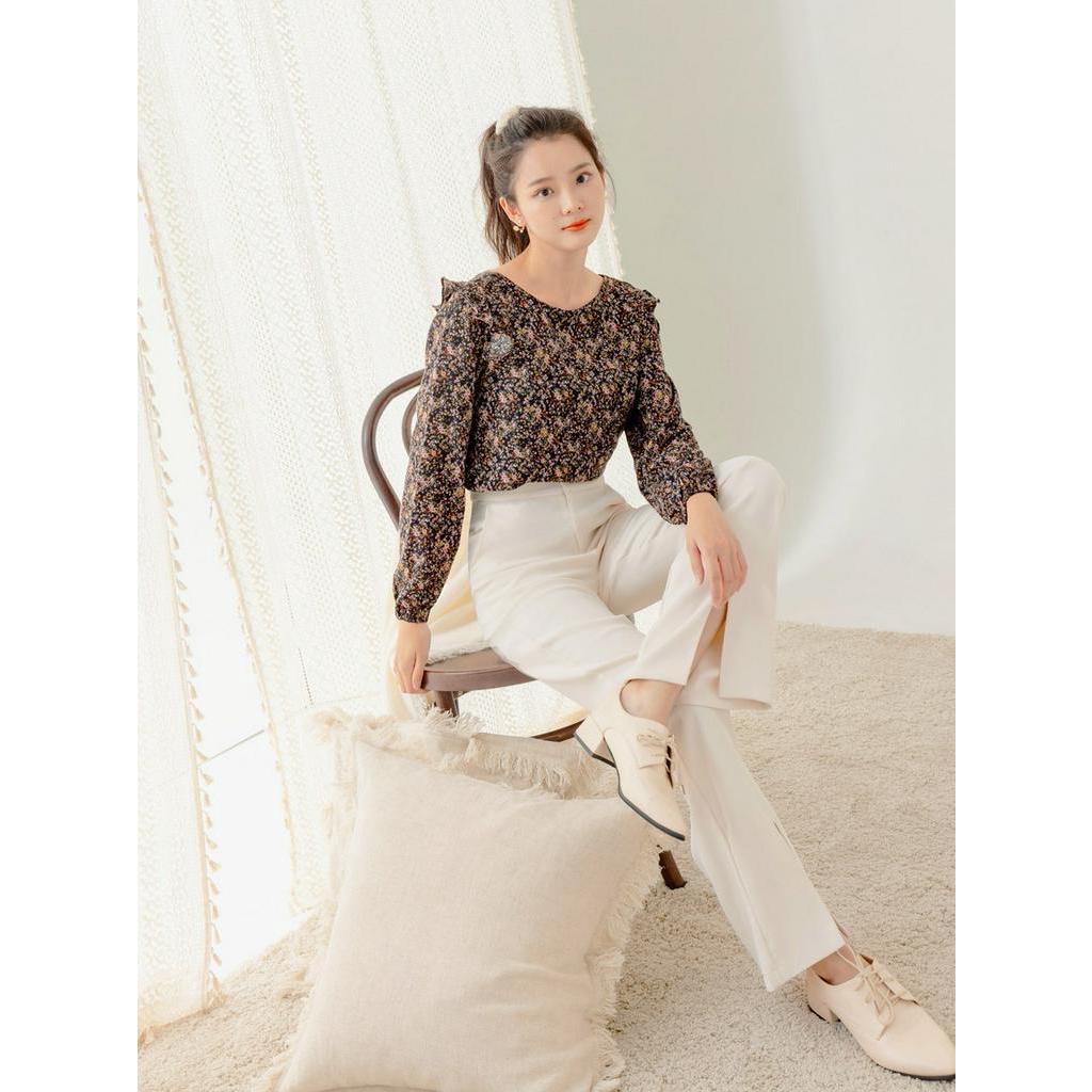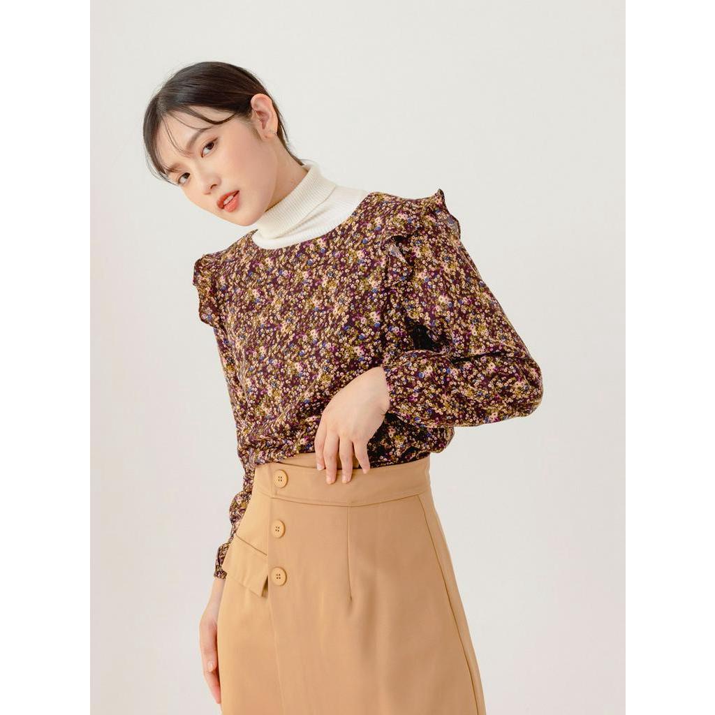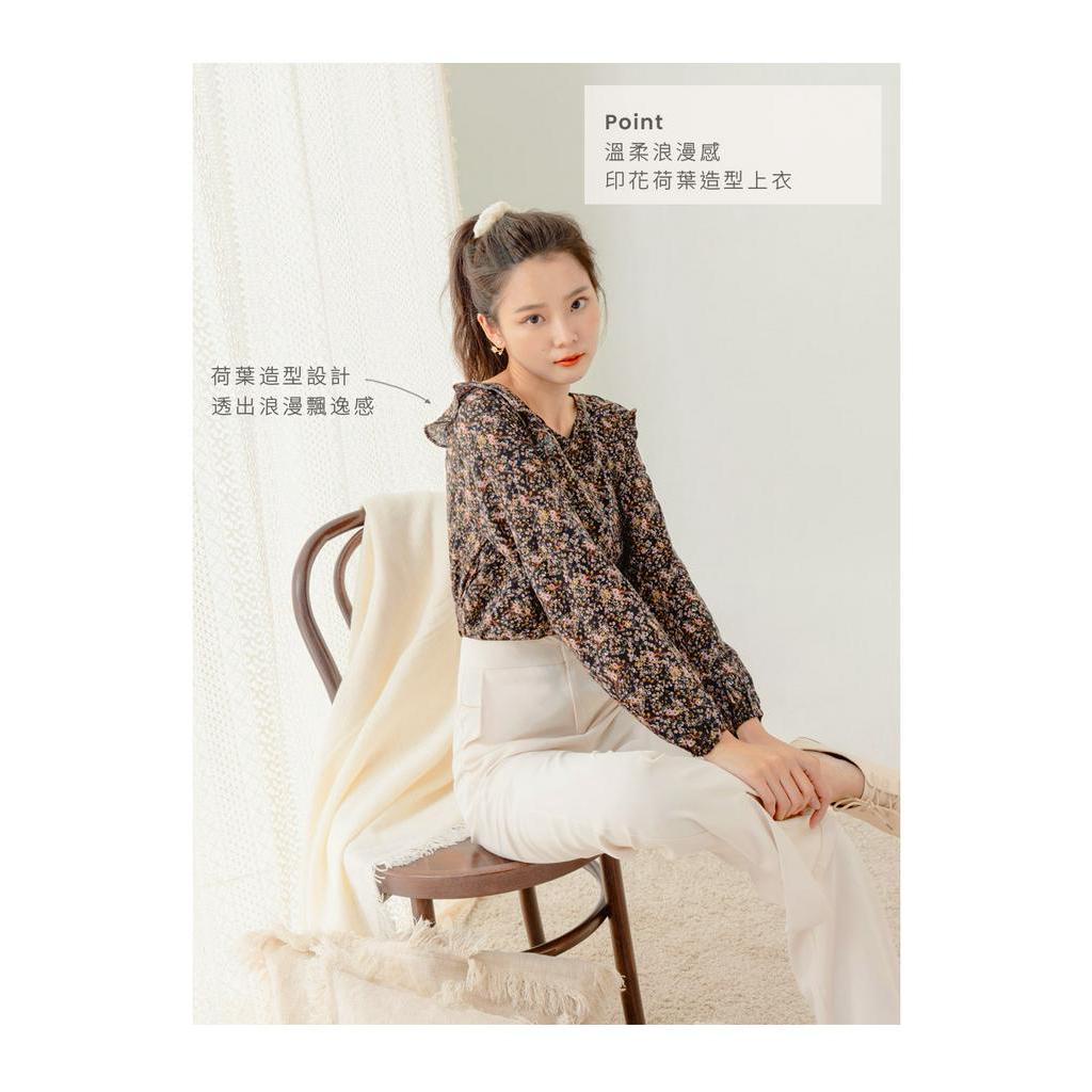 OB嚴選 古典油畫碎花荷葉拼接長袖上衣 《AB16457》大尺碼/現貨/女裝