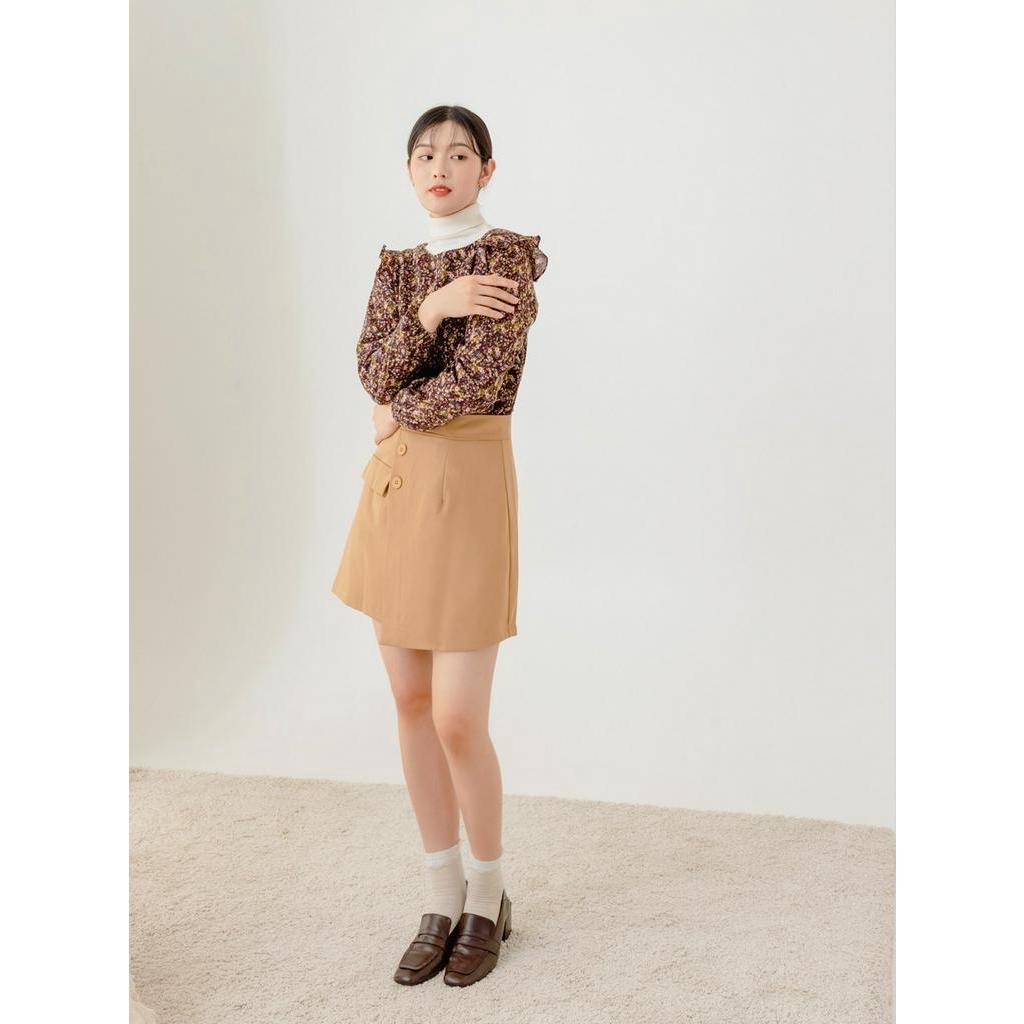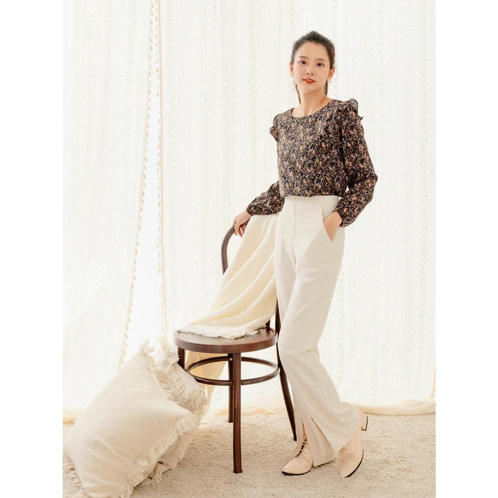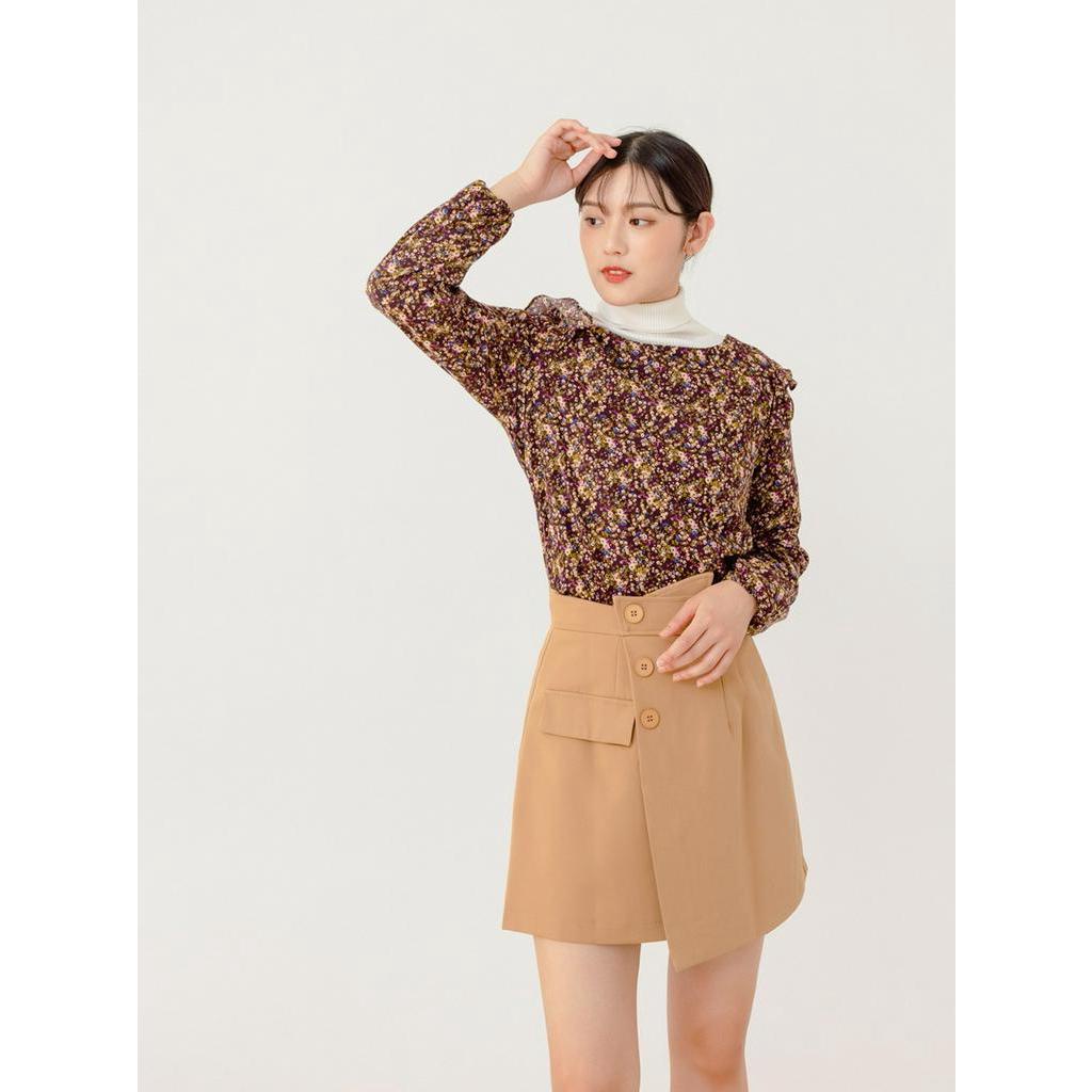 OB嚴選 古典油畫碎花荷葉拼接長袖上衣 《AB16457》大尺碼/現貨/女裝