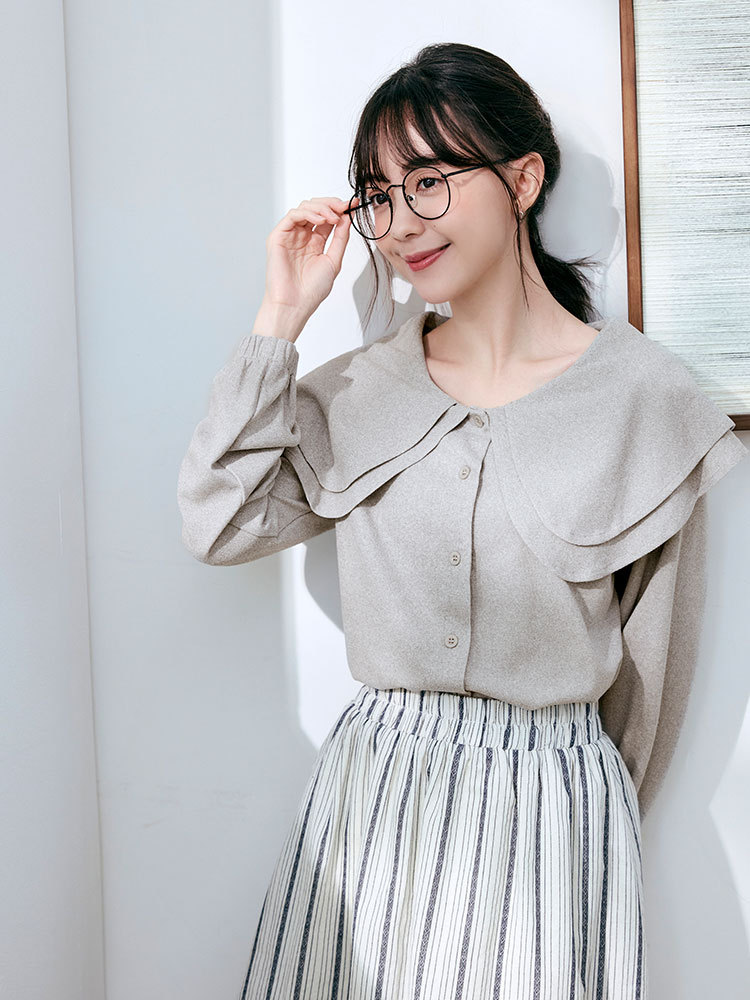 OB嚴選 絨面層次大領片小拋袖上衣 《AB19107》大尺碼/現貨/女裝