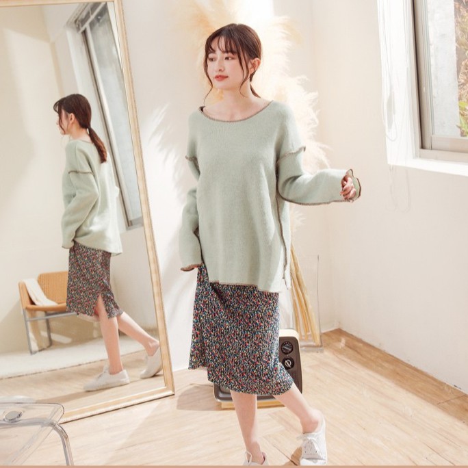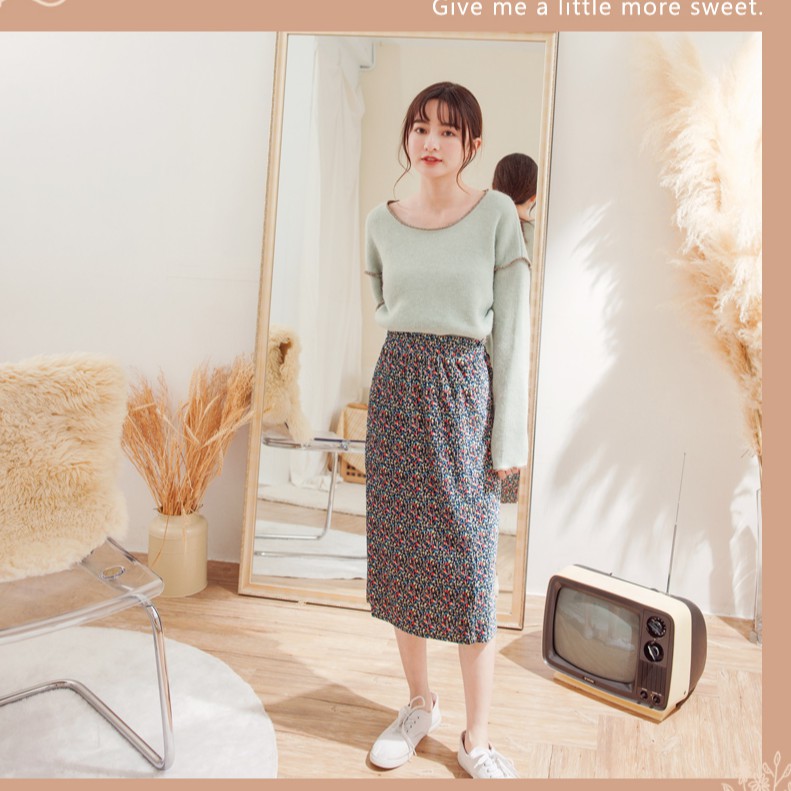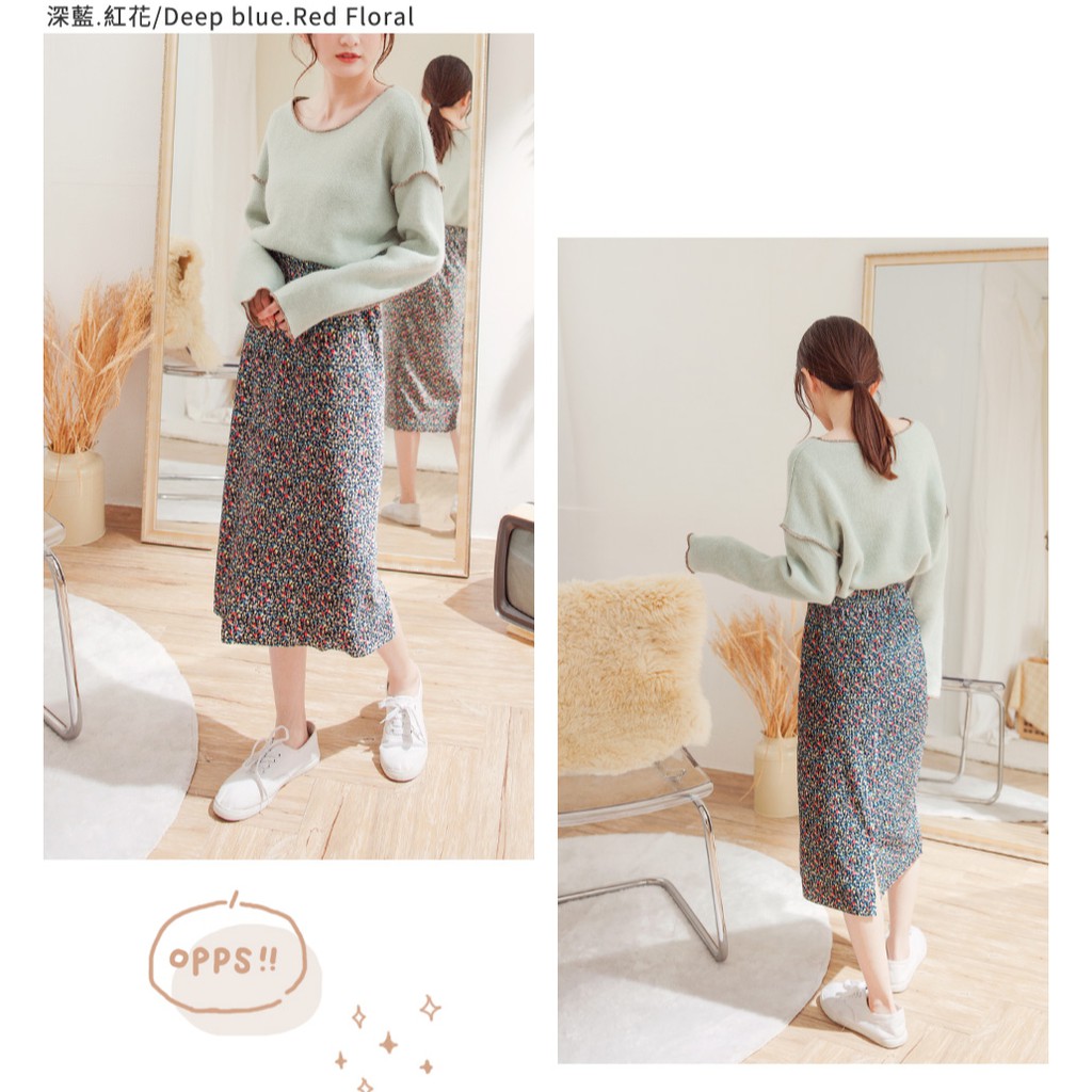 OB嚴選 法式浪漫小碎花燈芯絨後開衩中長裙 《CA2209》全館現貨大尺碼/女裝/現貨
