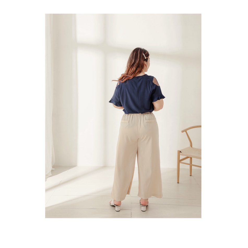 OB嚴選 V領微性感網紗拼接條紋雪紡上衣-雲朵自訂款 《AB15582》全館現貨大尺碼/女裝/現貨