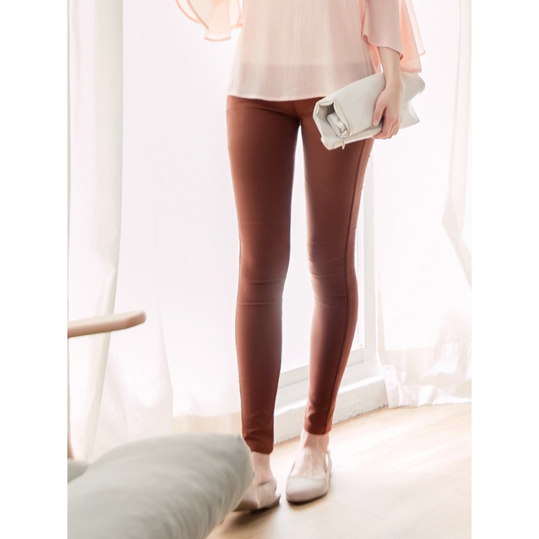 OB嚴選 腰鬆緊輕刷毛彈力窄管色褲 《BA1154》(黑/深咖/駝/暗紅/大紅/橘紅)