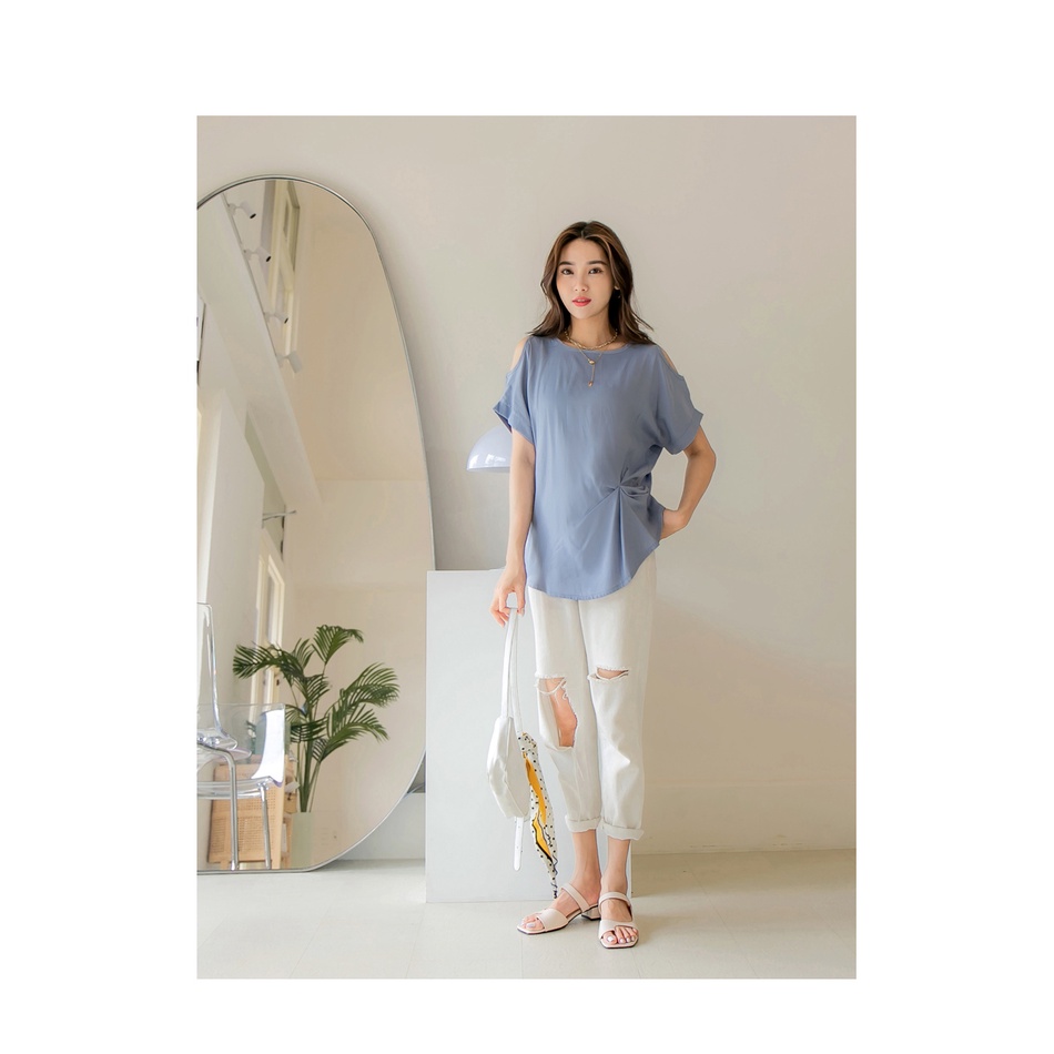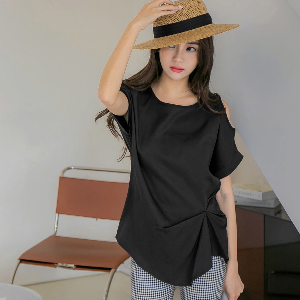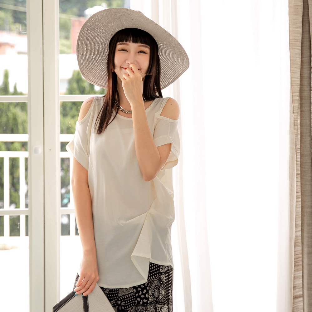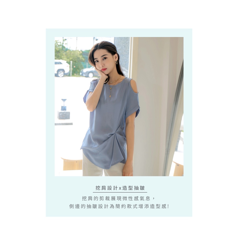 OB嚴選 純色觸膚涼感長版挖肩抽皺短袖上衣 《AB15525》全館現貨