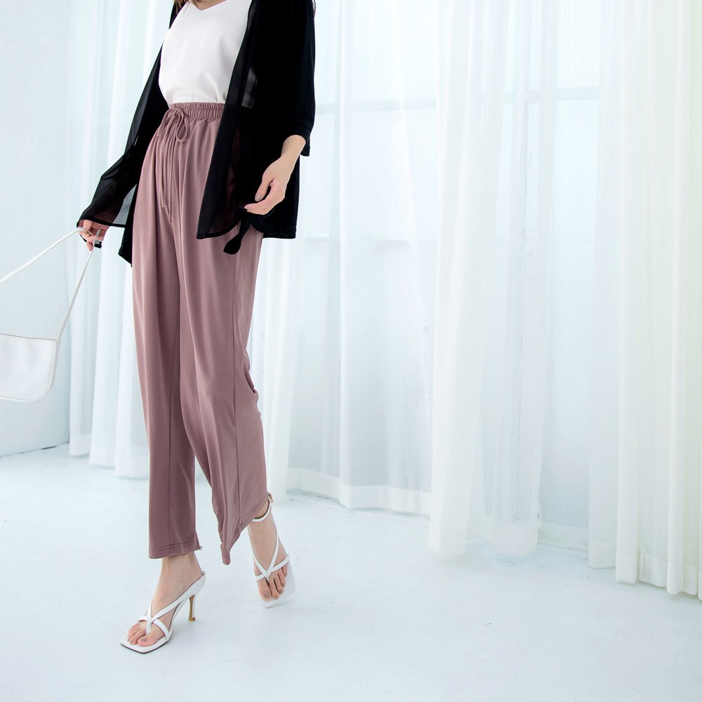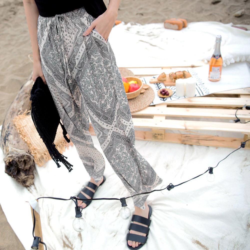 OB嚴選 涼感.冰箱空氣紗印花腰綁帶寬褲 《BA5557》(藕粉/鐵灰/幾何紫灰/葉子深藍/波希米亞杏/扶桑花深灰/黑)