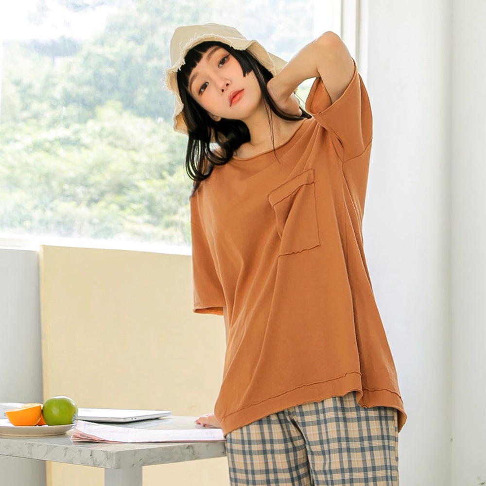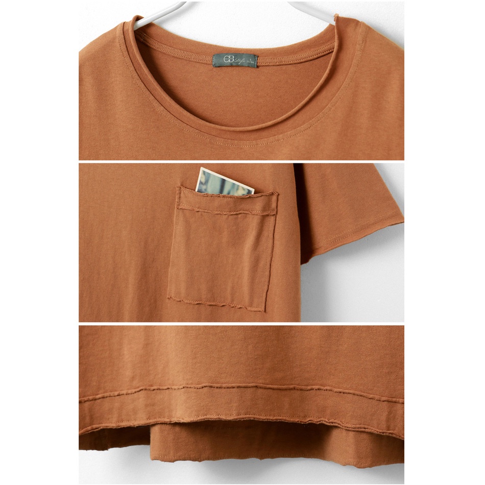 OB嚴選 純色高含棉長版鬚邊口袋五分袖上衣 《AB15557》全館現貨大尺碼/女裝/現貨