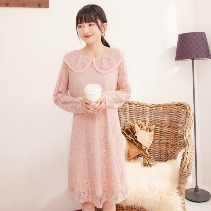 OB嚴選 優雅滿版鏤空蕾絲娃娃大翻領洋裝 《DA8285》全館現貨大尺碼/女裝/現貨