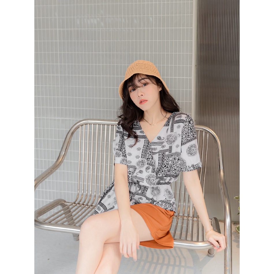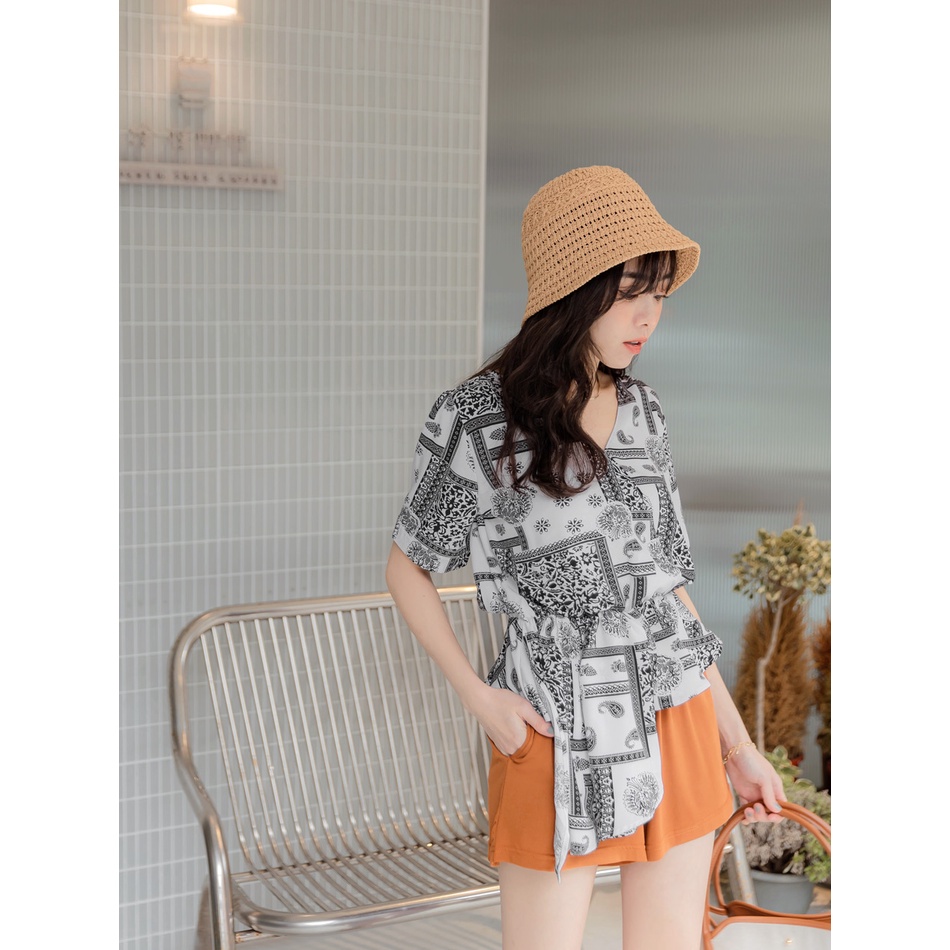 OB嚴選 民族風圖騰鬆緊收腰不對稱短袖上衣 《AB15217》全館現貨