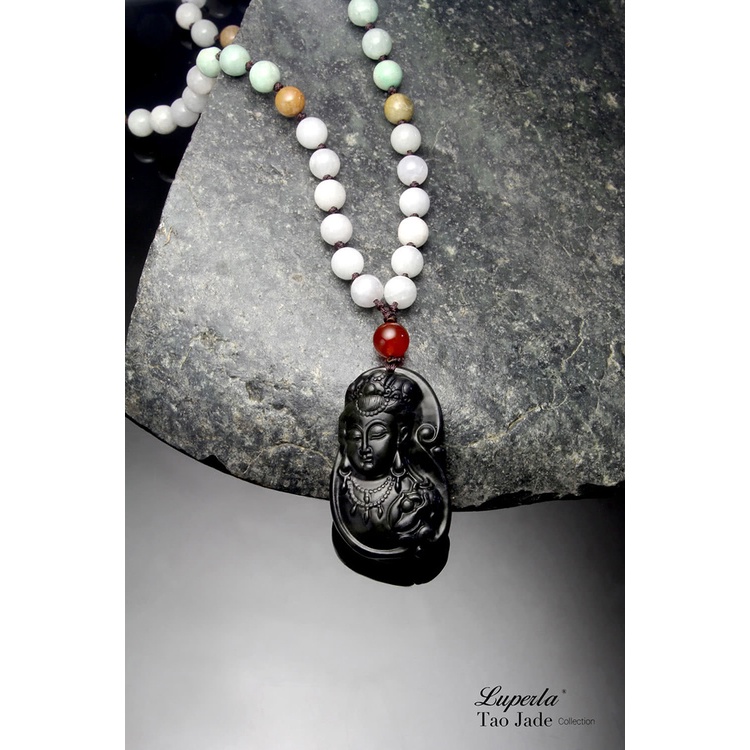 【大東山珠寶】祥和 特A級天然墨玉觀世音菩薩 翡翠長鍊版(台灣墨玉翡翠)