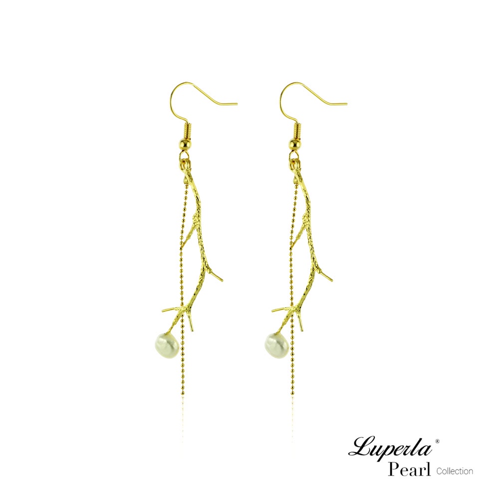 【大東山珠寶】浪漫花語璀璨奢金 天然珍珠 垂耳耳環(時尚淡水珍珠)