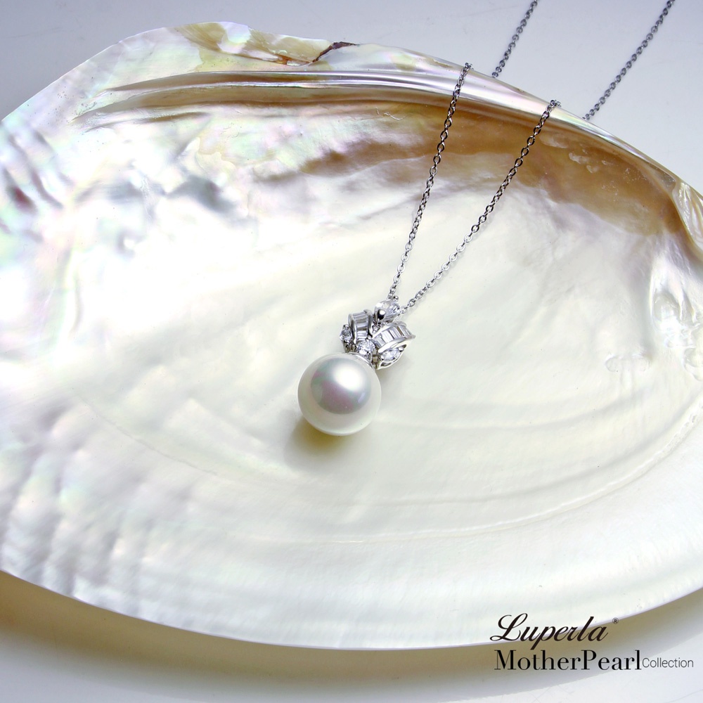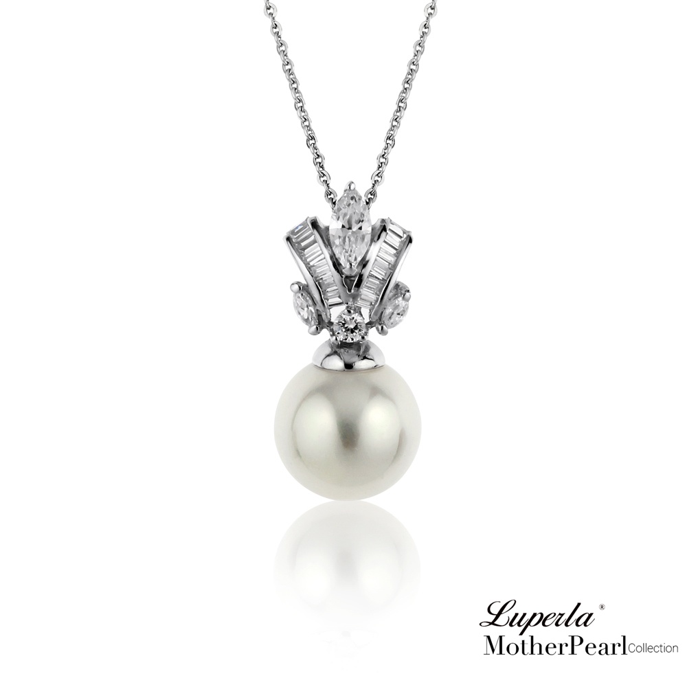 【大東山珠寶】純銀晶鑽南洋貝寶珠項鍊 14MM 公主后冠(硨磲貝珠 925銀)