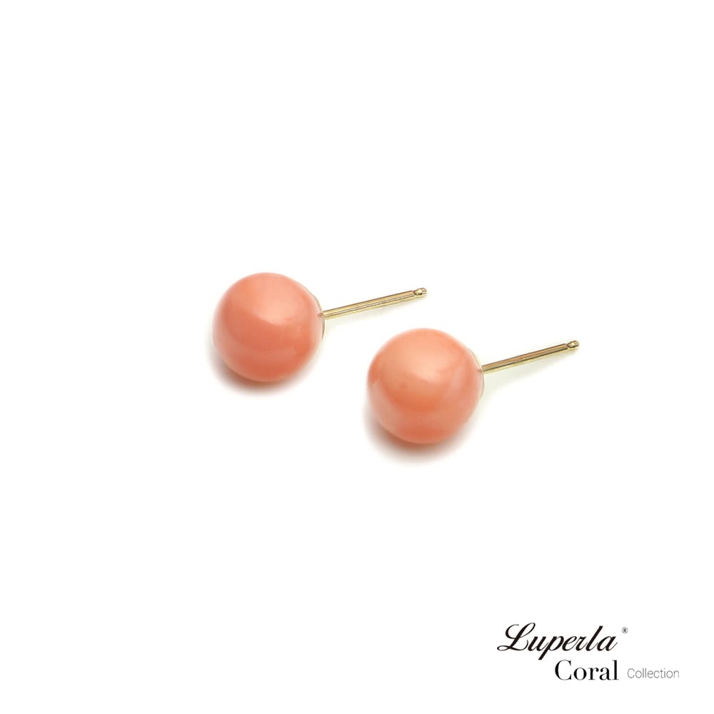 【大東山珠寶】天然粉色深海珊瑚 全圓 14K金耳環 8-8.5mm(14K金粉珊瑚)