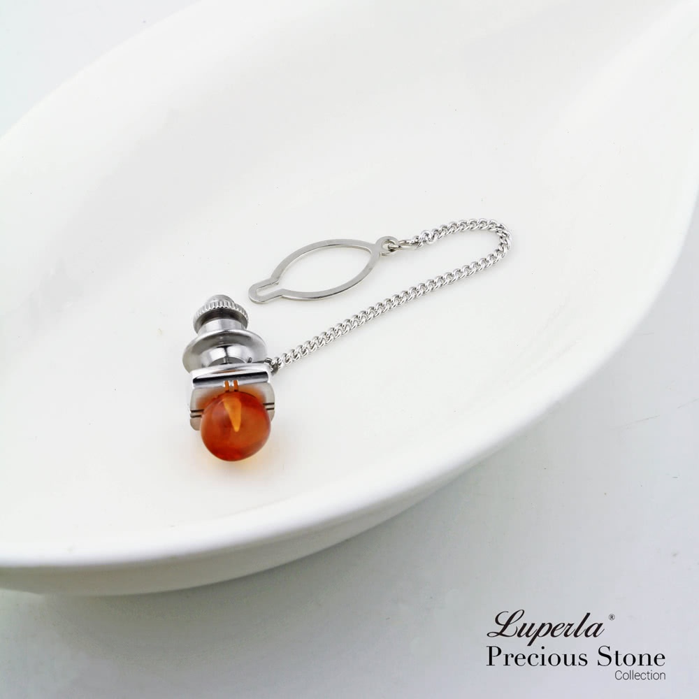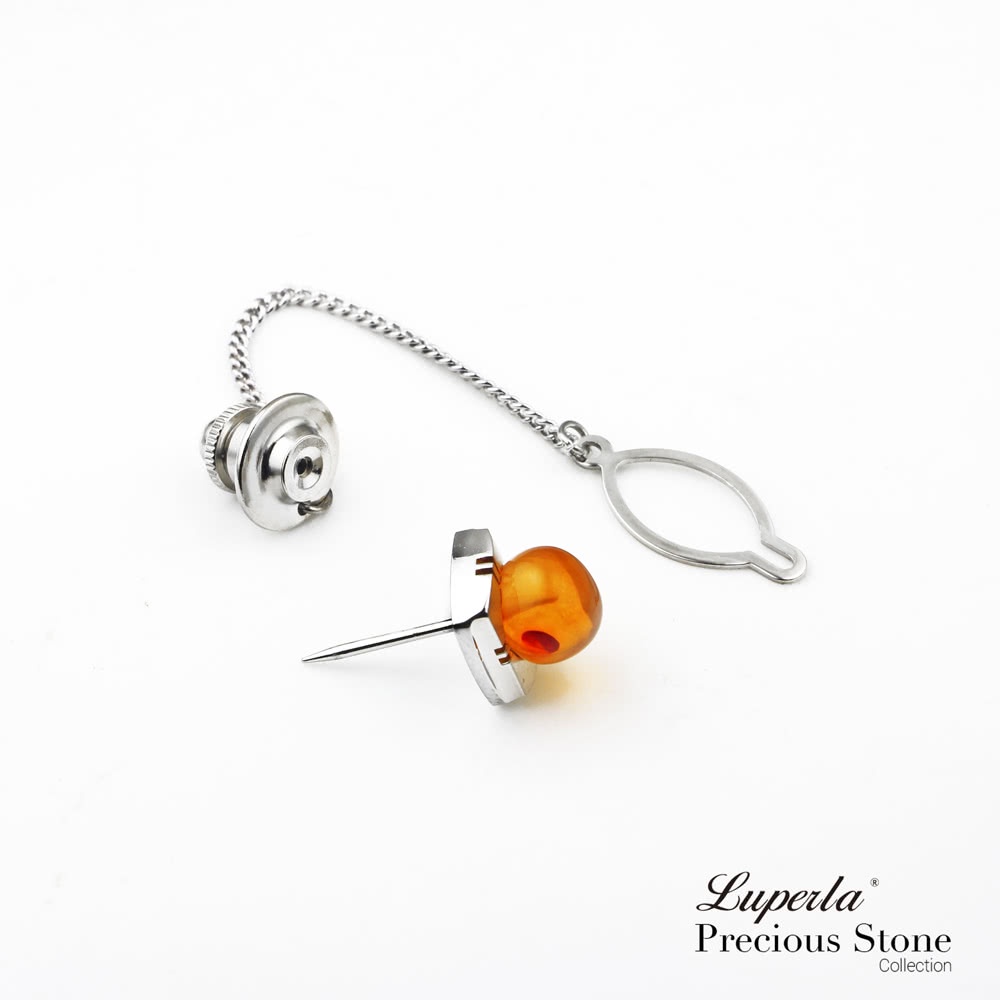 【大東山珠寶】天然蜜蠟琥珀 領徽 領帶夾(天然蜜蠟琥珀)