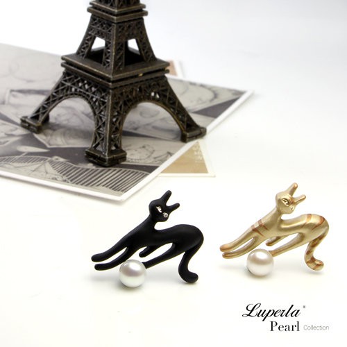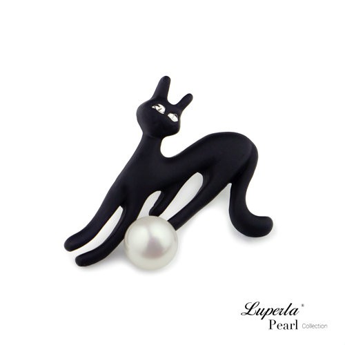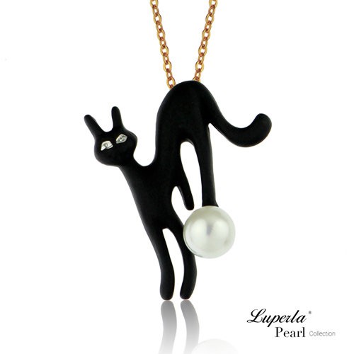 【大東山珠寶】手繪彩漆珍珠長版項鍊 貓咪飾品(俏皮魔女貓)-魔女黑