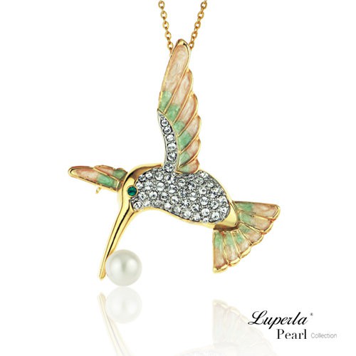 【大東山珠寶】 璀璨蜂鳥 珍珠項鍊胸針兩用款-甜美嫩粉