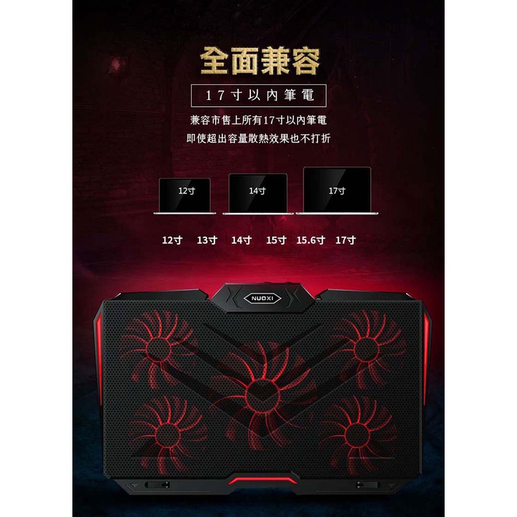【MEMO】渦輪五風扇筆電散熱架-冰派黑紅(NX-05)