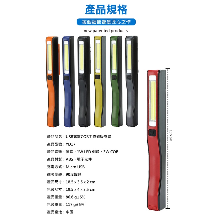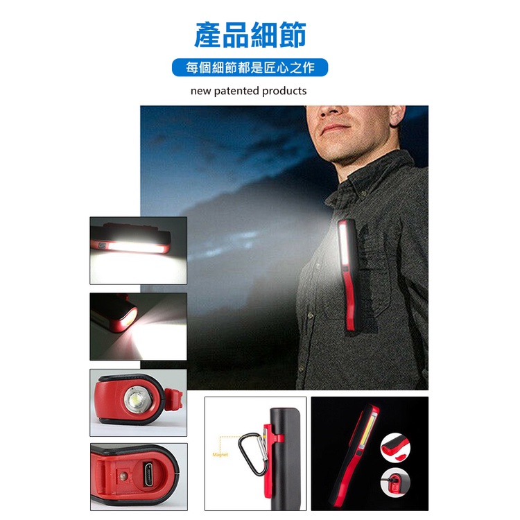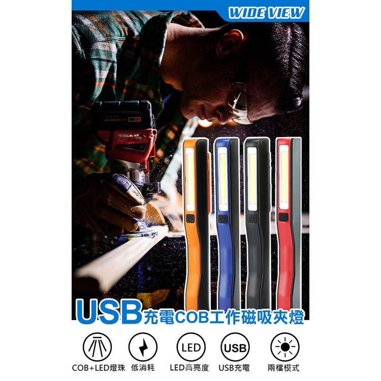 【WIDE VIEW】USB充電COB工作磁吸夾燈(YD17)