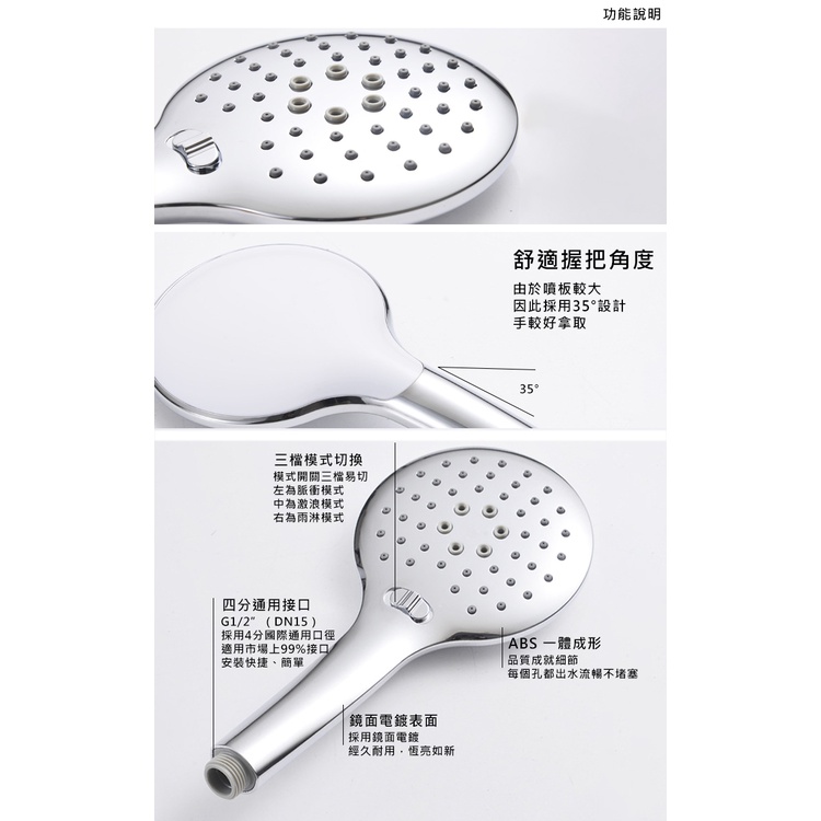 【WIDE VIEW】5吋三檔增壓蓮蓬頭(DCH3000CP)一年保固