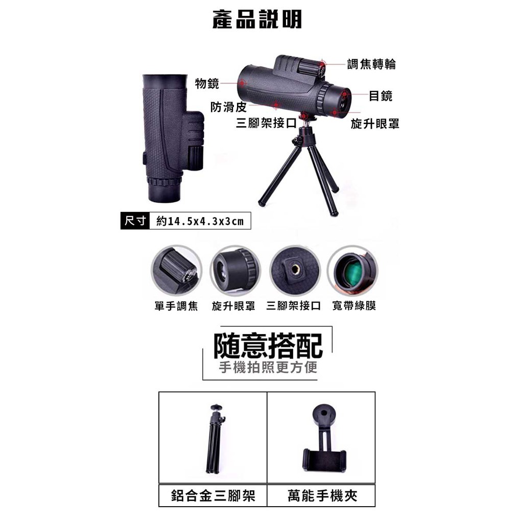 【COMET】微光夜視8x40變焦單筒望遠鏡(Y1042)