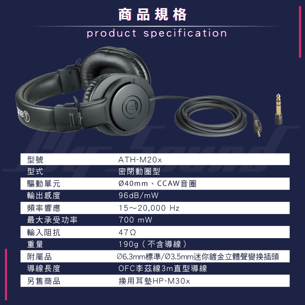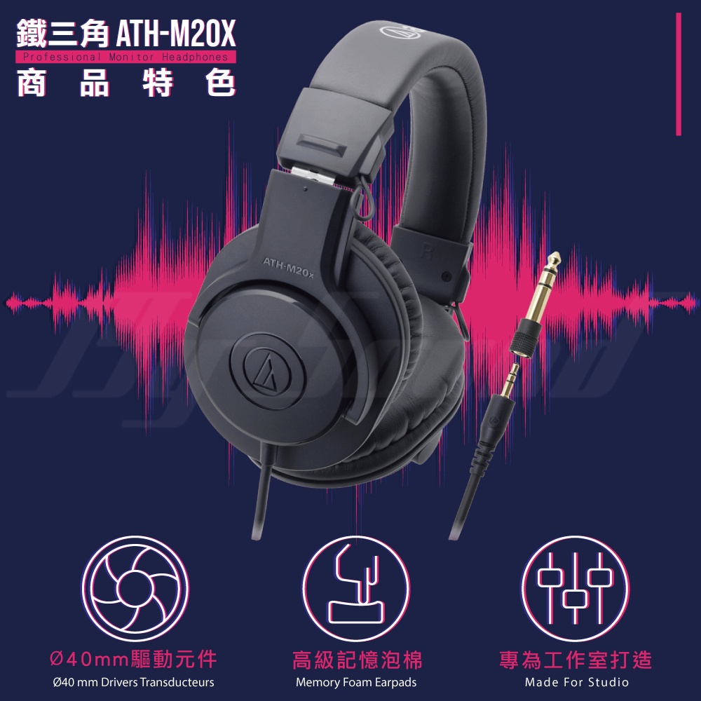 【鐵三角】ATH-M20x 高音質錄音室用專業型監聽耳機 耳罩耳機 監聽耳機 M20