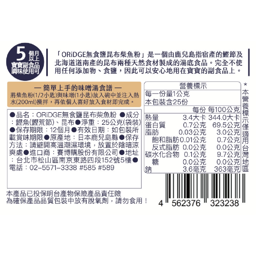 日本 ORIDGE 無食鹽昆布柴魚粉 25g/包【宜兒樂】