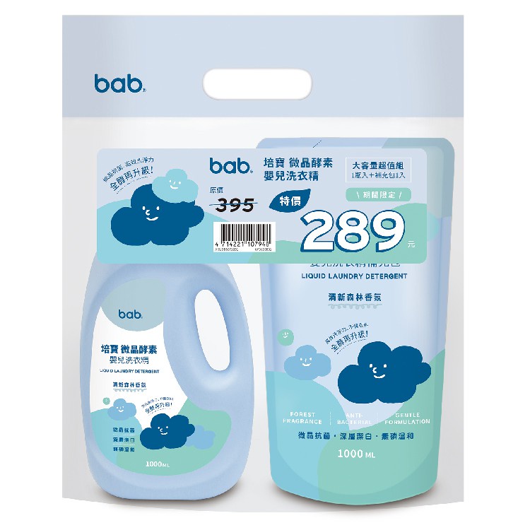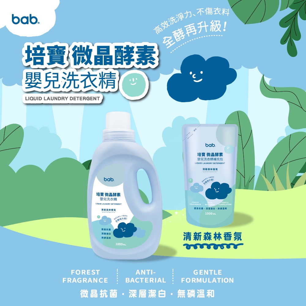 培寶 bab 微晶酵素嬰兒洗衣精 罐裝1000ml/補充包1000ml【宜兒樂】
