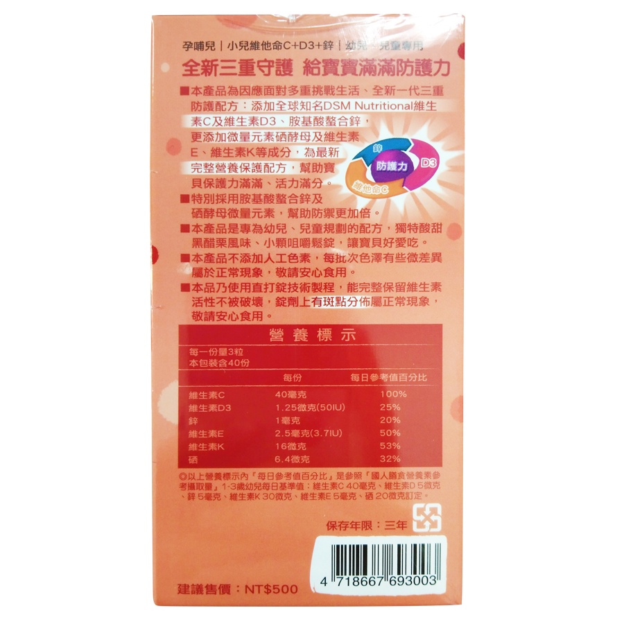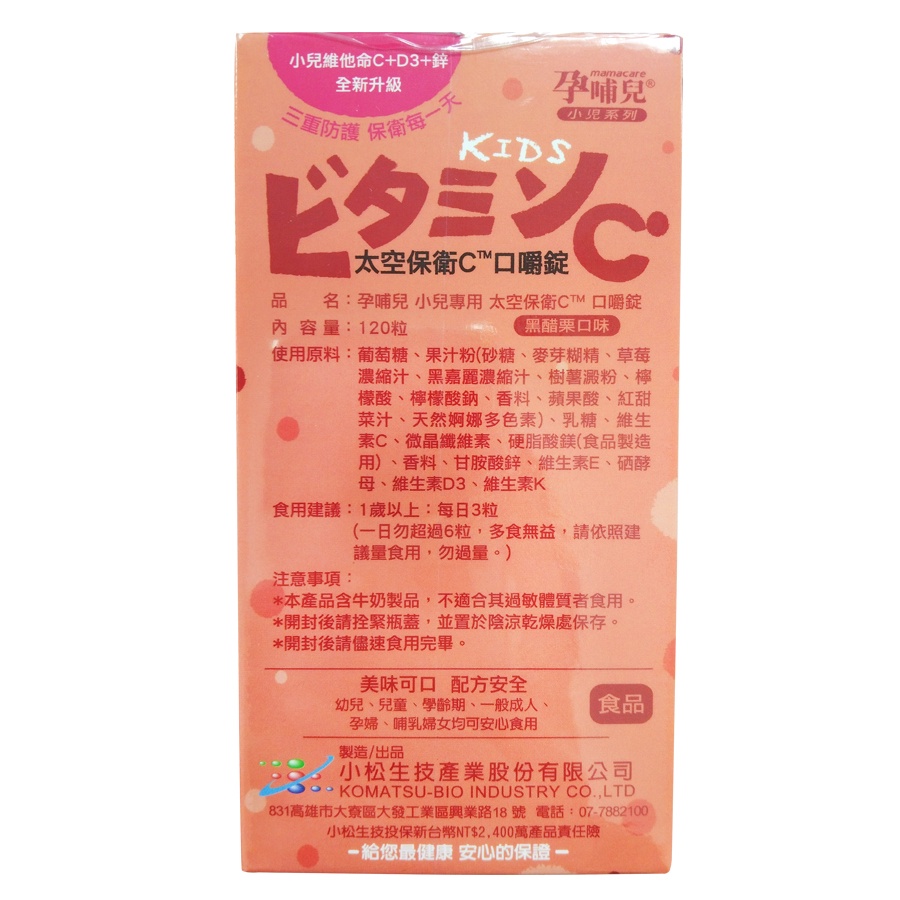 孕哺兒 小兒專用口嚼錠 太空保衛C 120錠/盒 買再送星空舒敏洗臉巾【宜兒樂】