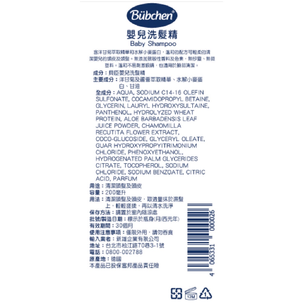 Bubchen 貝臣 嬰兒洗髮精 200ml【宜兒樂】