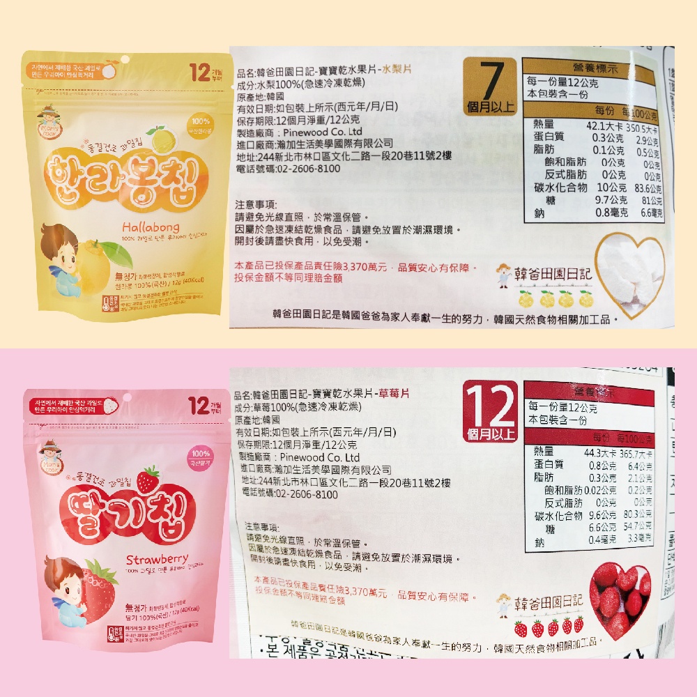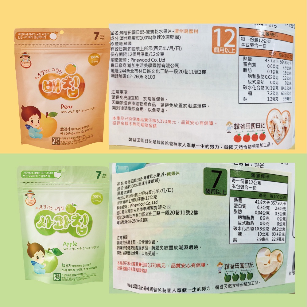 韓爸田園日記 寶寶乾水果片/果乾 蘋果/水梨/草莓/濟州島蜜柑【宜兒樂】