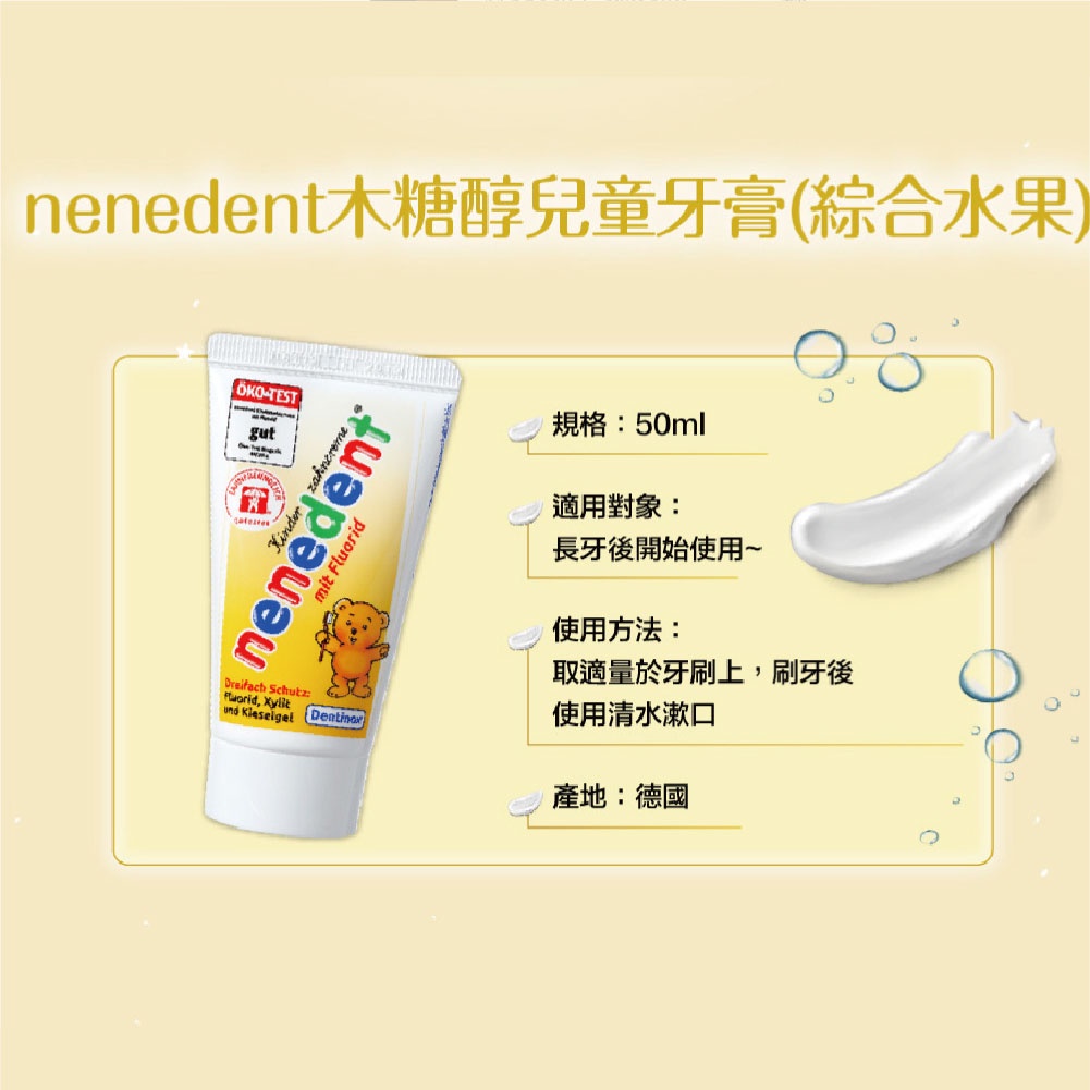 Baan 貝恩 nenedent木糖醇兒童牙膏 50ml 綜合水果/香蕉蘋果/不含氟【宜兒樂】