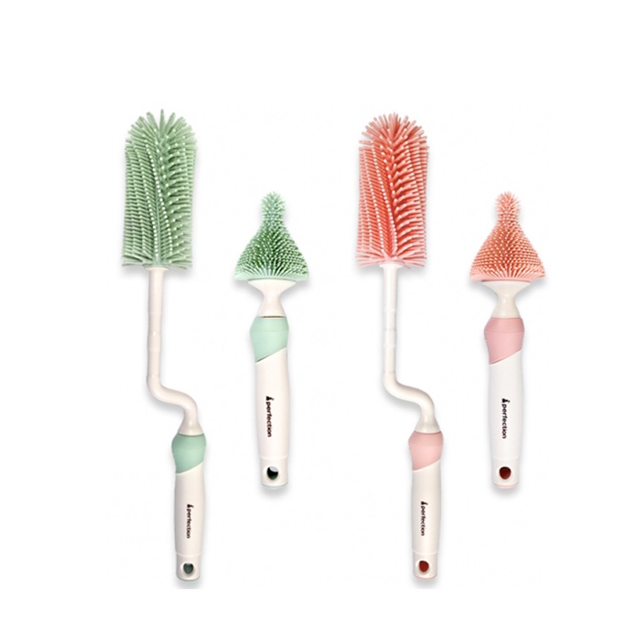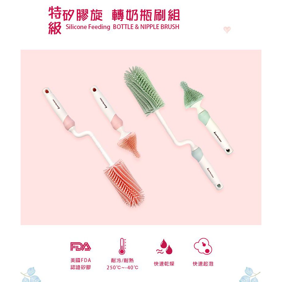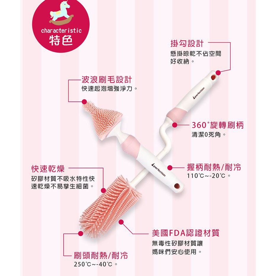 傳佳知寶 perfection 特級矽膠旋轉奶瓶刷組 粉/綠【宜兒樂】