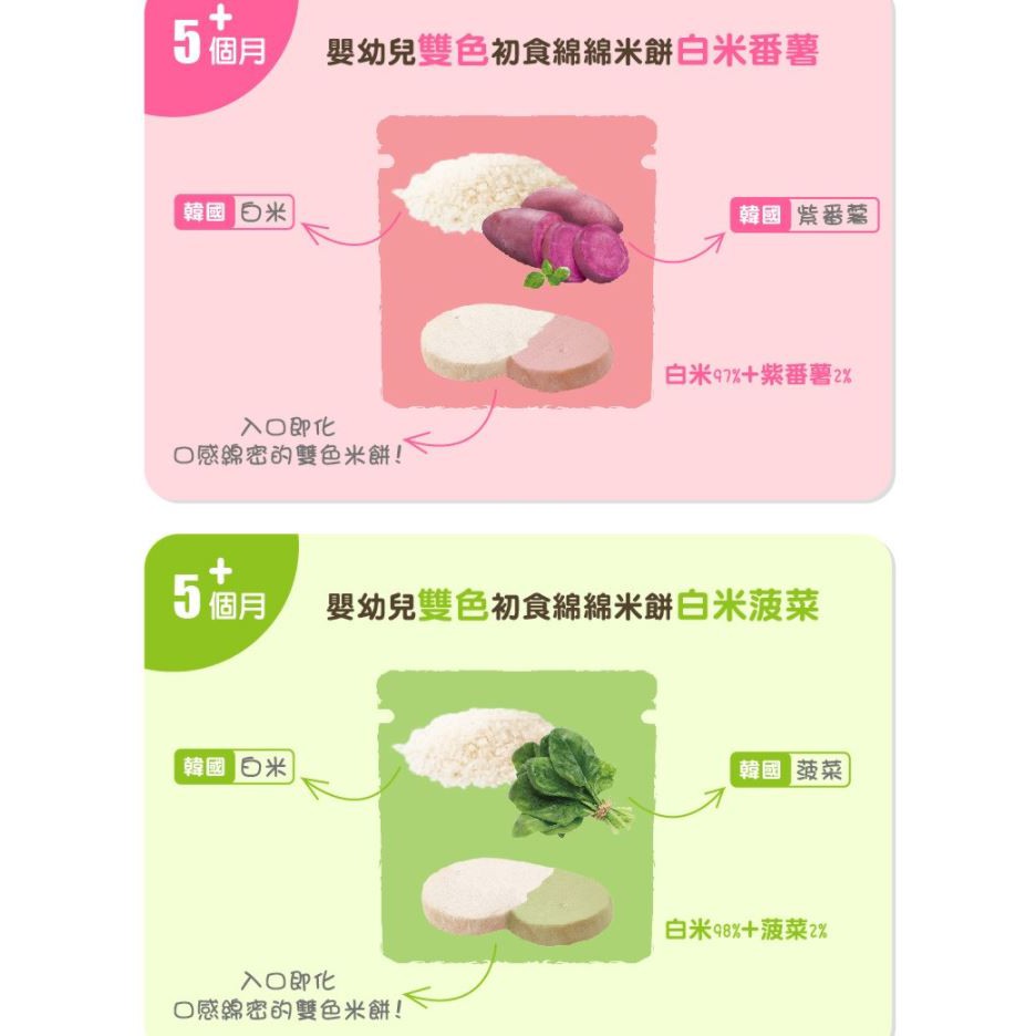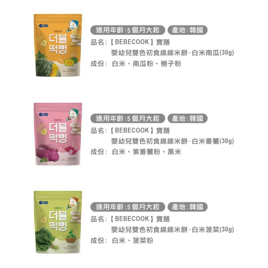 BEBECOOK 智慧媽媽 寶膳 嬰幼兒 雙色初食綿綿米餅 白米南瓜/白米菠菜/白米番薯【宜兒樂】