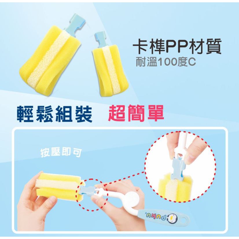 PUKU 藍色企鵝 海綿奶瓶刷/海綿刷頭2入【宜兒樂】