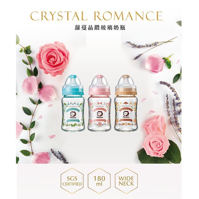 Simba 小獅王 辛巴 蘿蔓晶鑽寬口玻璃奶瓶180ml 3色【宜兒樂】