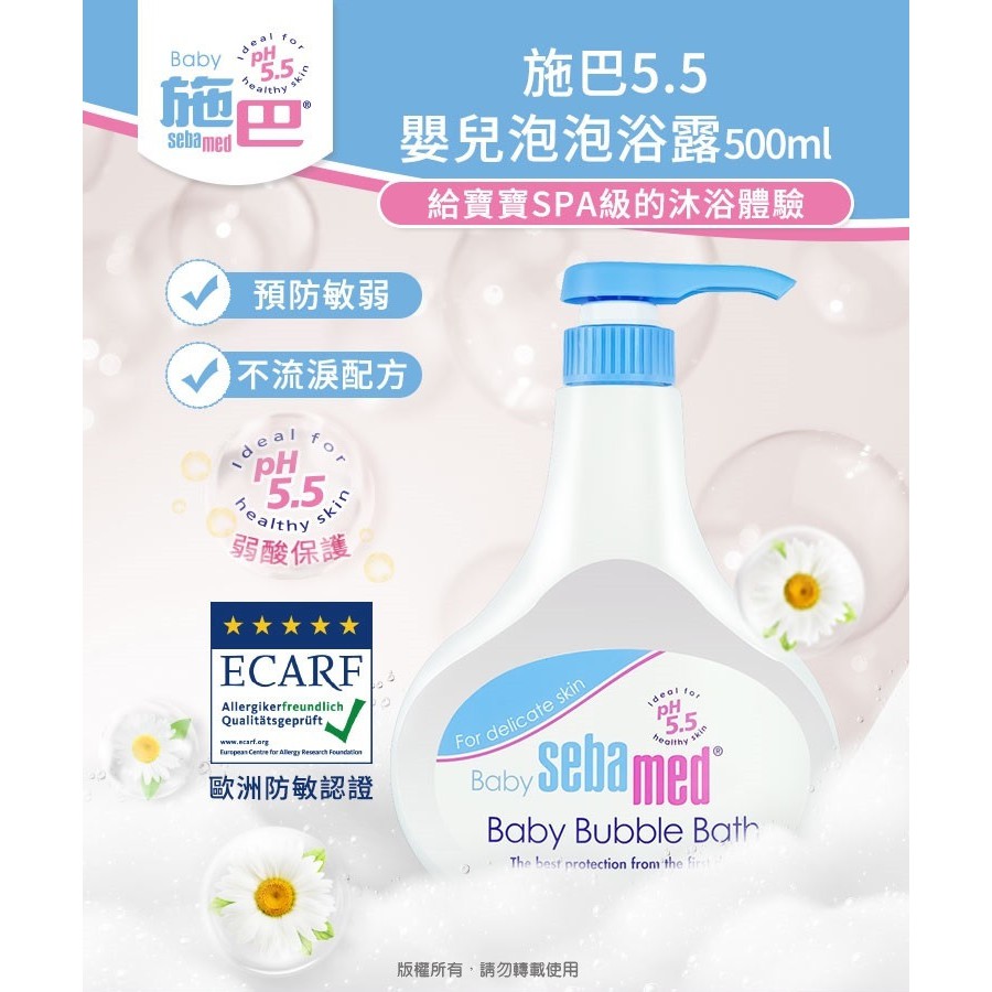 Sebamed 施巴 嬰兒泡泡浴露 500ml 附壓頭 【宜兒樂】