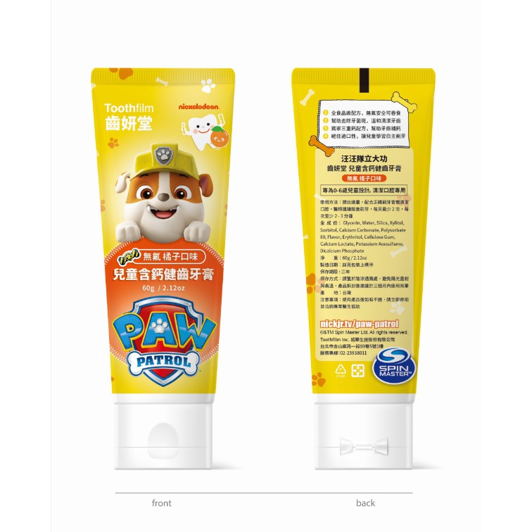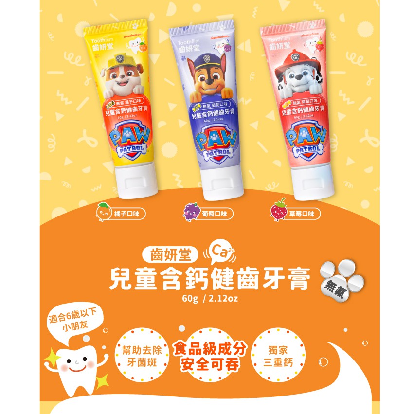 齒妍堂T-SPRAY Kids 汪汪隊 兒童無氟含鈣健齒牙膏 60g 葡萄/草莓/橘子【宜兒樂】