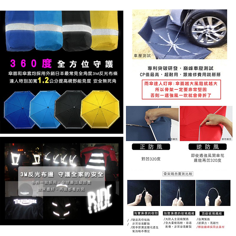 【雨傘達人】日系職男21吋自動開收三折傘【免運費】【台灣製造】【外銷日本規格設計-寬1.2公分3A安全反光布條】