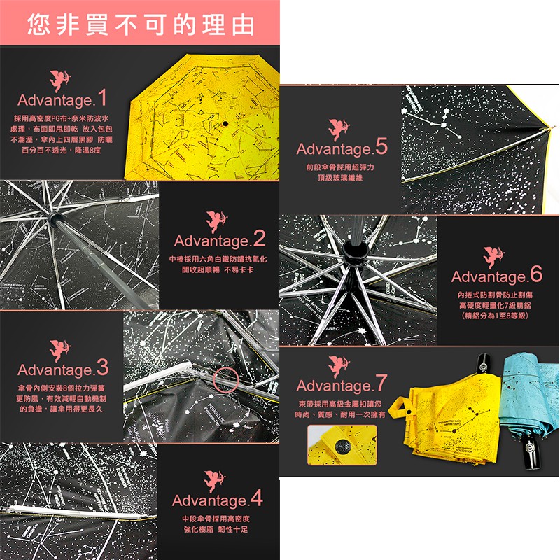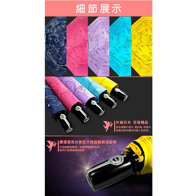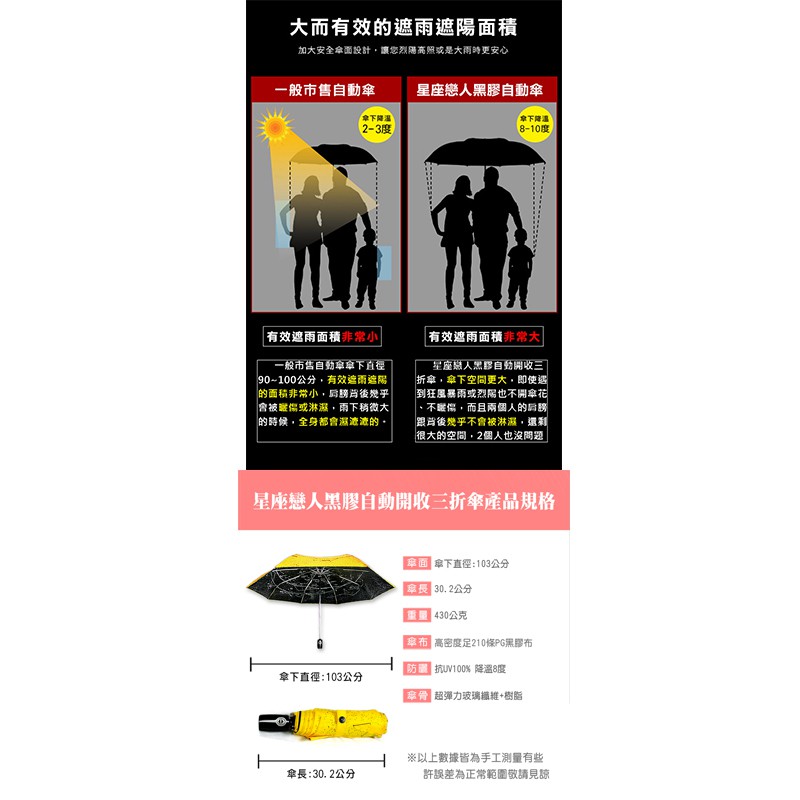 【雨傘達人】星座戀人黑膠自動開收三折傘【2支免運費】【足210條PG黑膠布/傘面不沾水】【抗UV100% 傘下降溫8度】