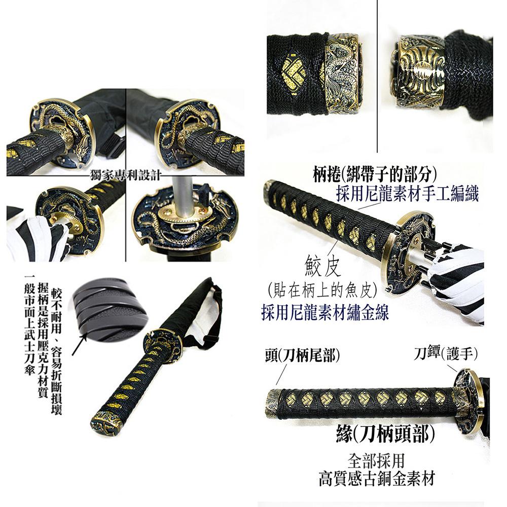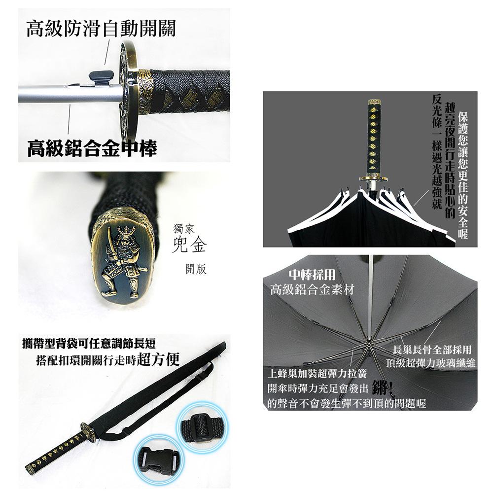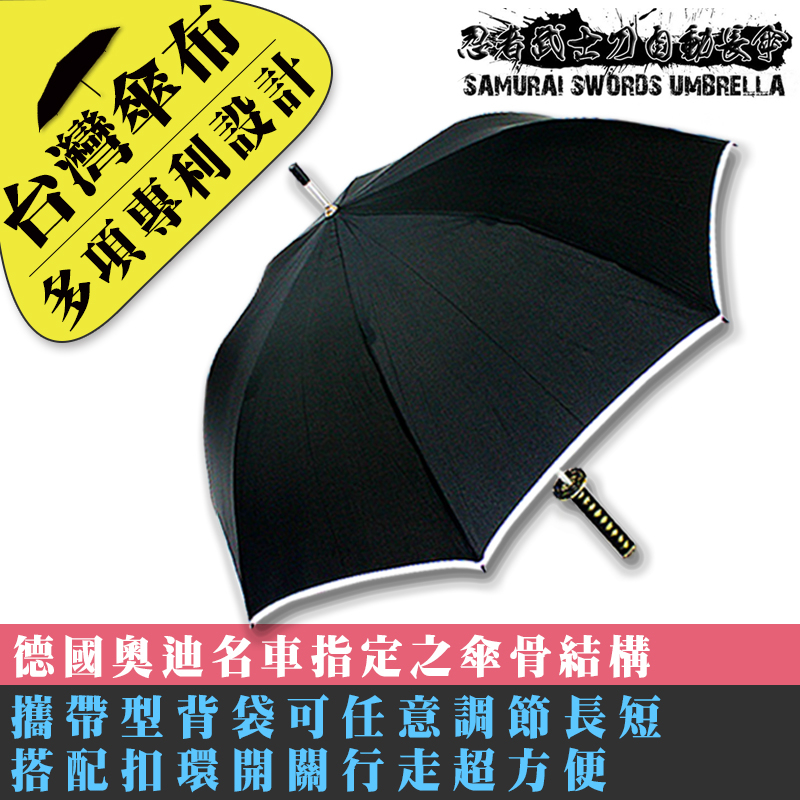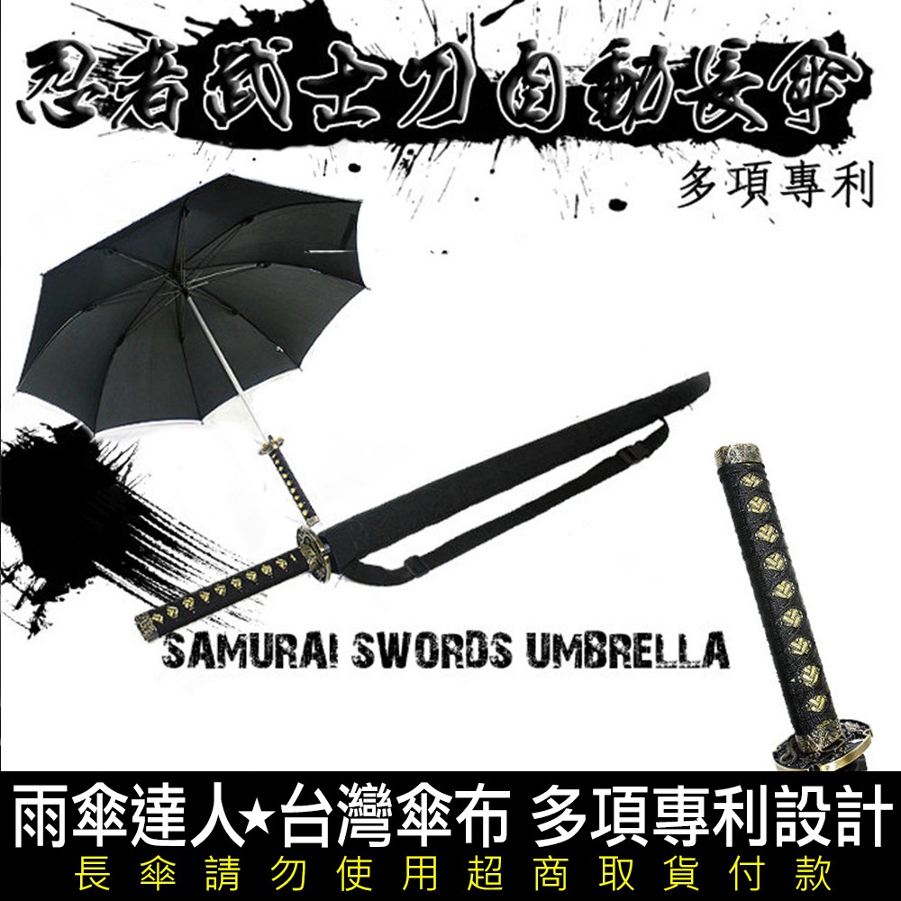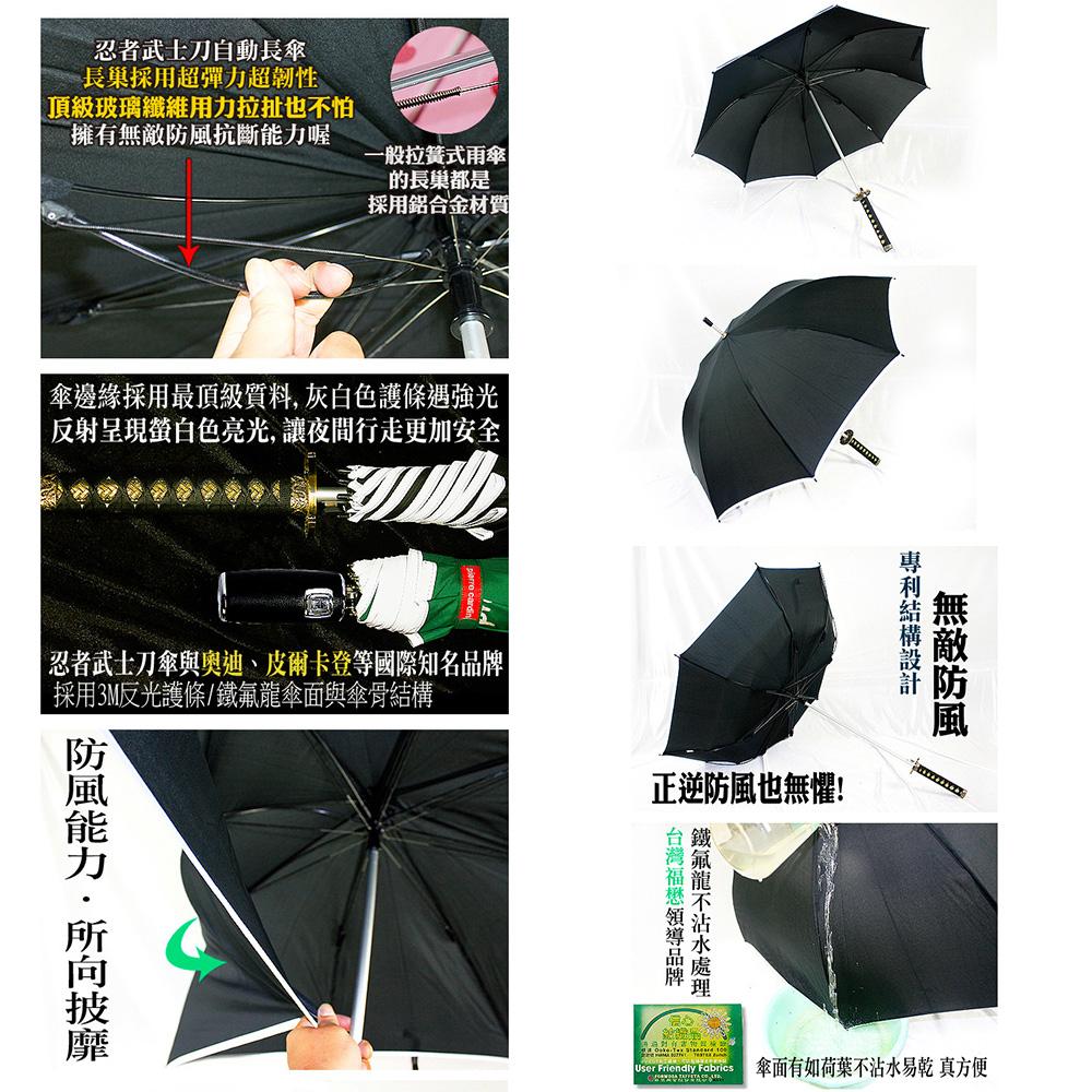 【雨傘達人】忍者武士刀自動長傘【台灣傘布】【專利傘骨銅製的鼎級武士刀手柄】【台灣福懋鐵氟龍超潑水-夜間反光護條】