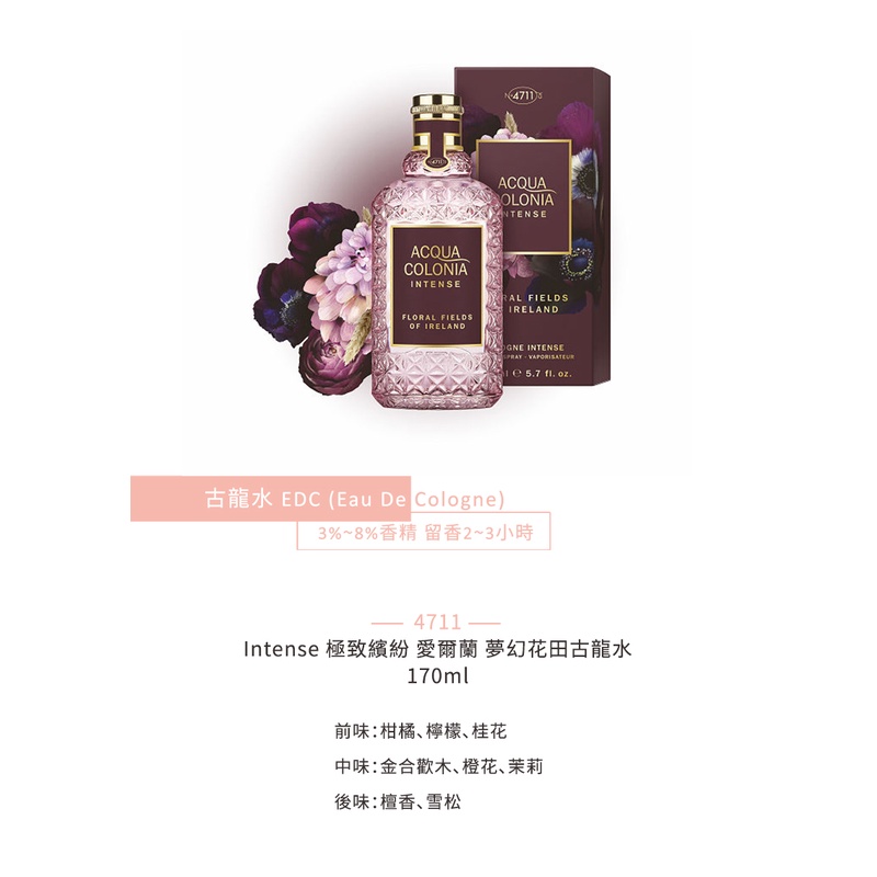 4711 Intense 極致繽紛 愛爾蘭 夢幻花田古龍水 170ml《BEAULY倍莉》情人節禮物 生日禮物 送禮首選