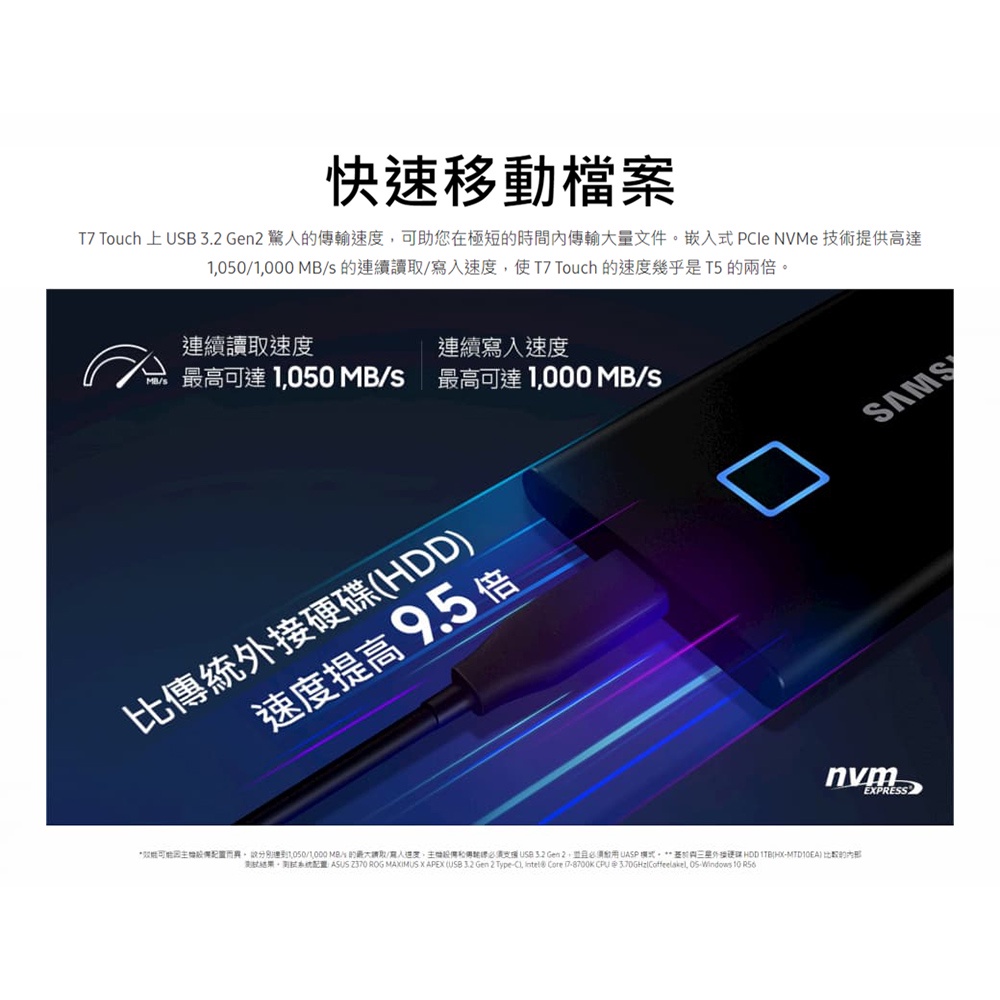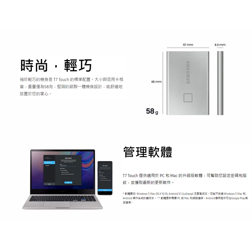 SAMSUNG三星 T7 Touch 500GB 移動固態硬碟 時尚銀 MU-PC500S 台灣公司貨 原廠保固