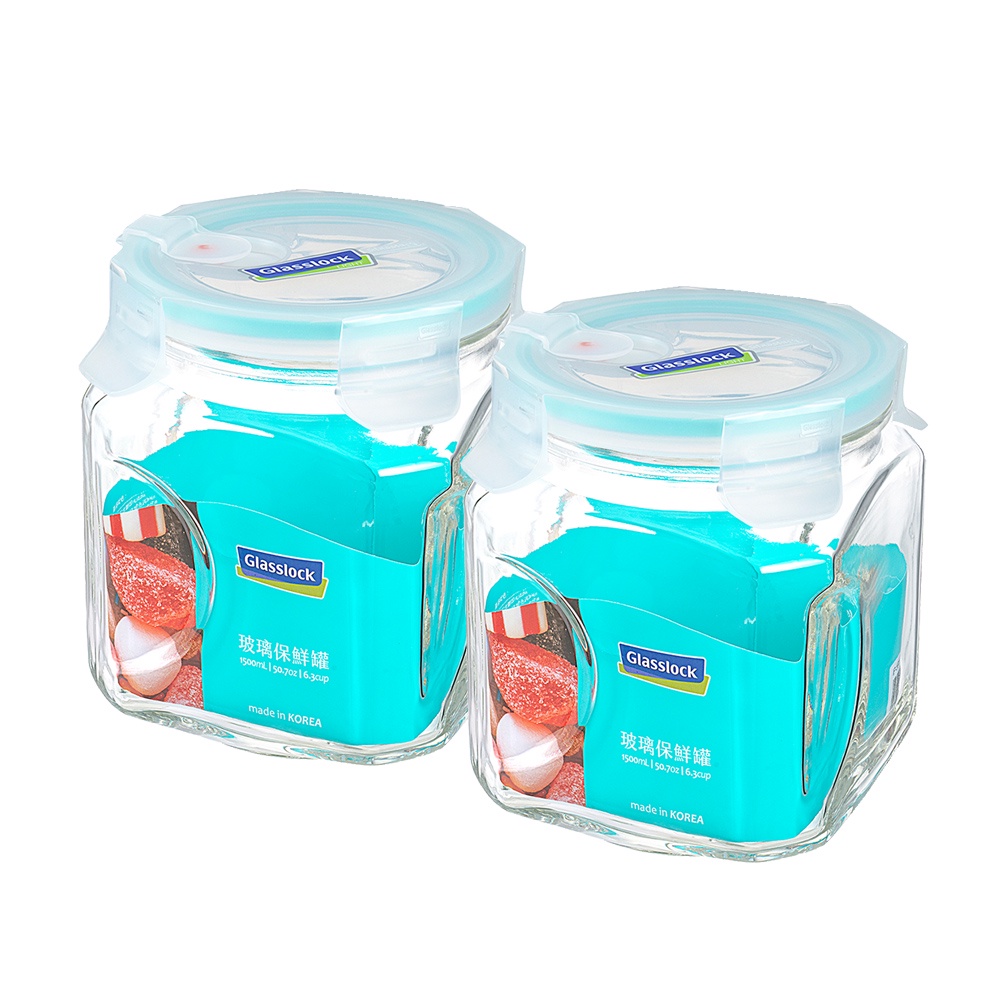 Glasslock 氣孔式上蓋玻璃保鮮罐-1500ml (二入)/醃製玻璃罐、醃製罐、密封罐