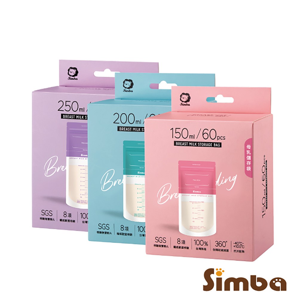 小獅王辛巴 Simba 母乳儲存袋 60入/盒 (150ml / 200ml / 250ml)|母乳袋