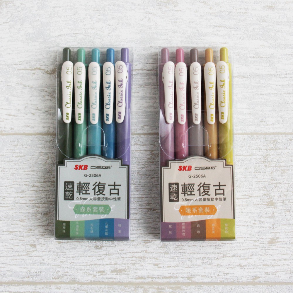 SKB文明鋼筆|輕復古按動中性筆(5入2款)【G-2506A】