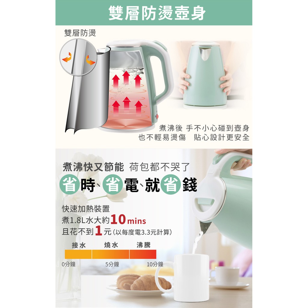 鍋寶 316雙層防燙保溫快煮壺1.8L 湖水綠 KT-90184G