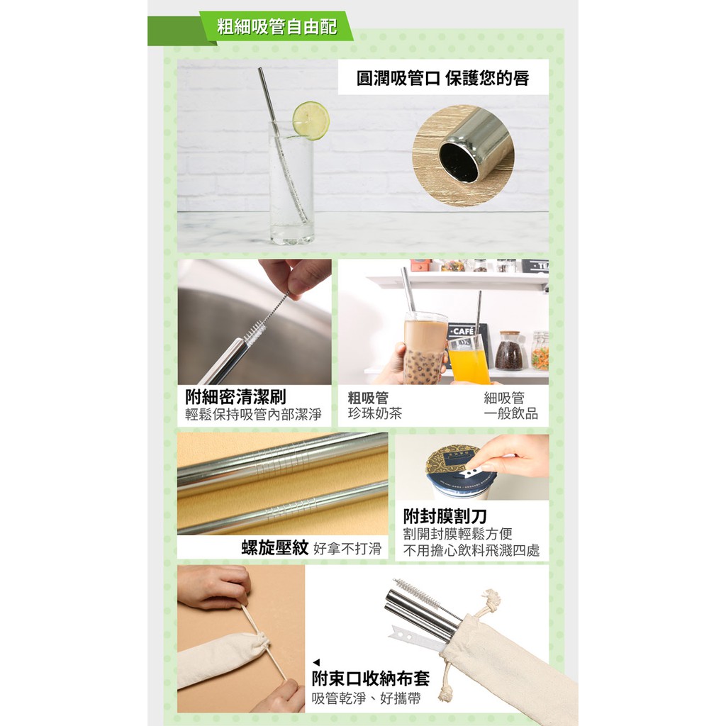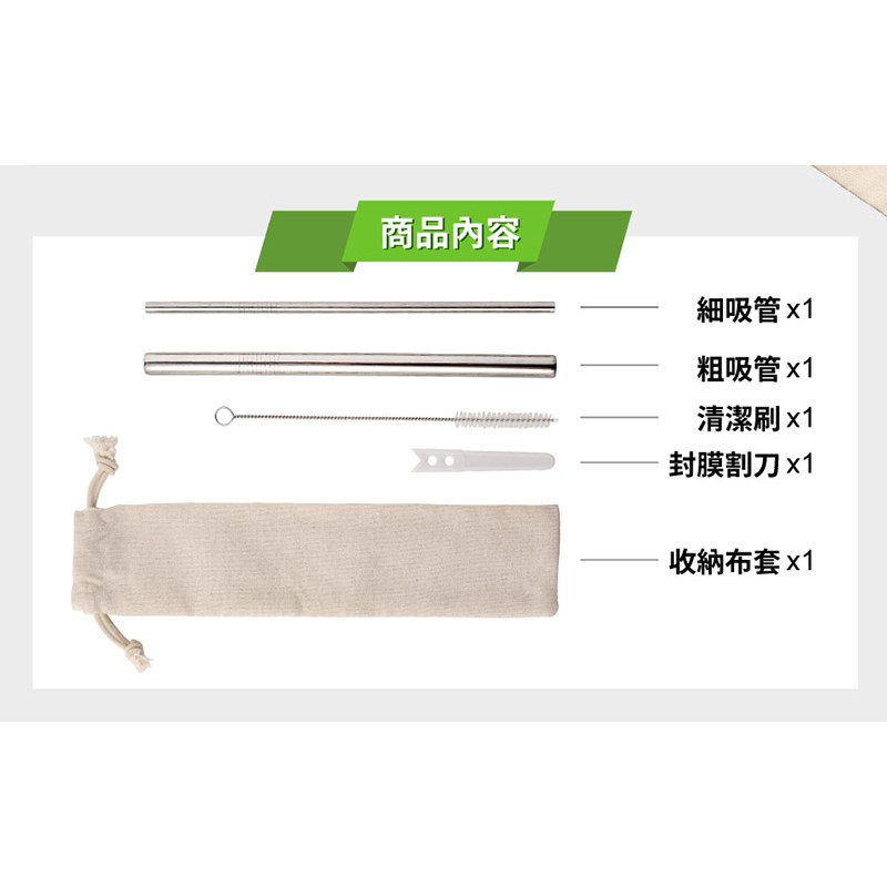 鍋寶 316不鏽鋼吸管組-5件式(粗/細吸管+清潔刷+封膜刀片+束口袋) RG-365