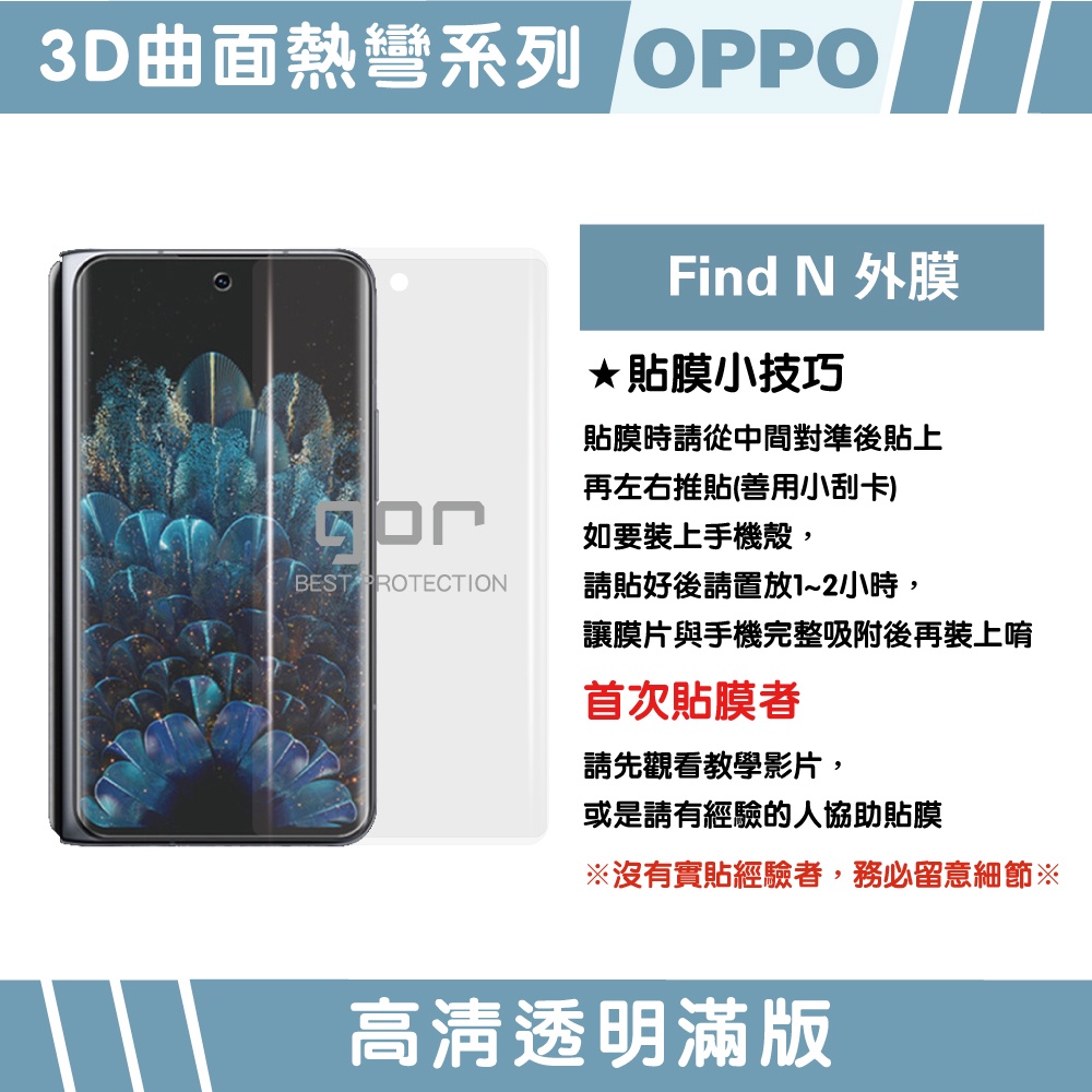 【GOR保護貼】OPPO Find N (內/外螢幕膜) 全透明滿版軟膜兩片裝 PET保護貼