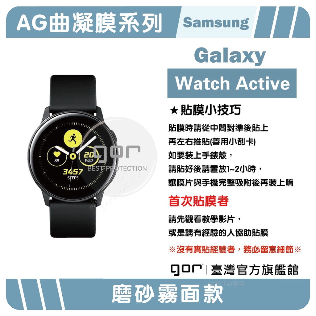 【GOR保護貼】三星 Watch Active 霧面手錶膜 AG曲凝膜 手錶軟膜 兩片裝 PET 保護膜 美曲膜 現貨