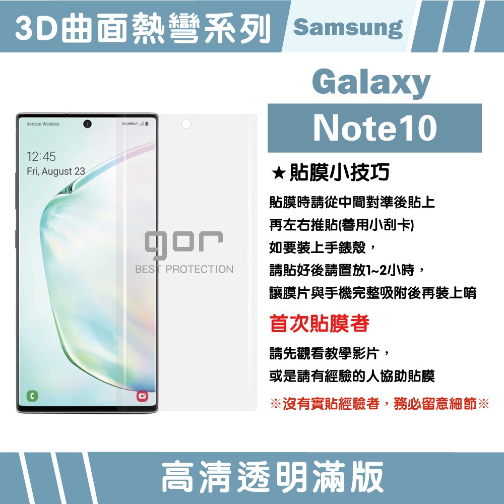 【GOR保護貼】三星 Note10 滿版保護貼 全透明滿版軟膜兩片裝 note10 PET保護貼 正膜 現貨