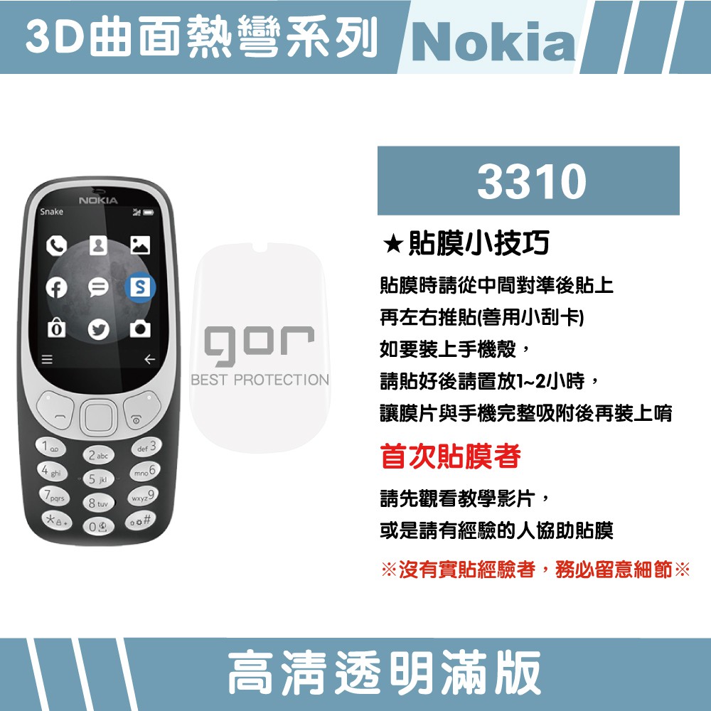 【GOR保護貼】Nokia 3310 滿版保護貼 全透明滿版軟膜兩片裝 諾基亞 正膜 PET保護貼 現貨
