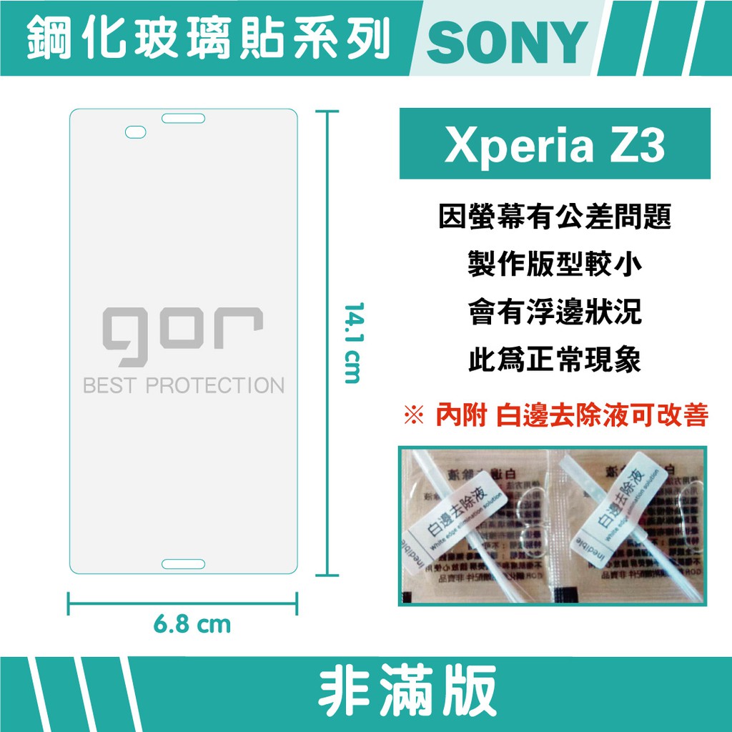 【GOR保護貼】SONY Z3 9H鋼化玻璃保護貼 sony z3 全透明非滿版2片裝 公司貨 現貨